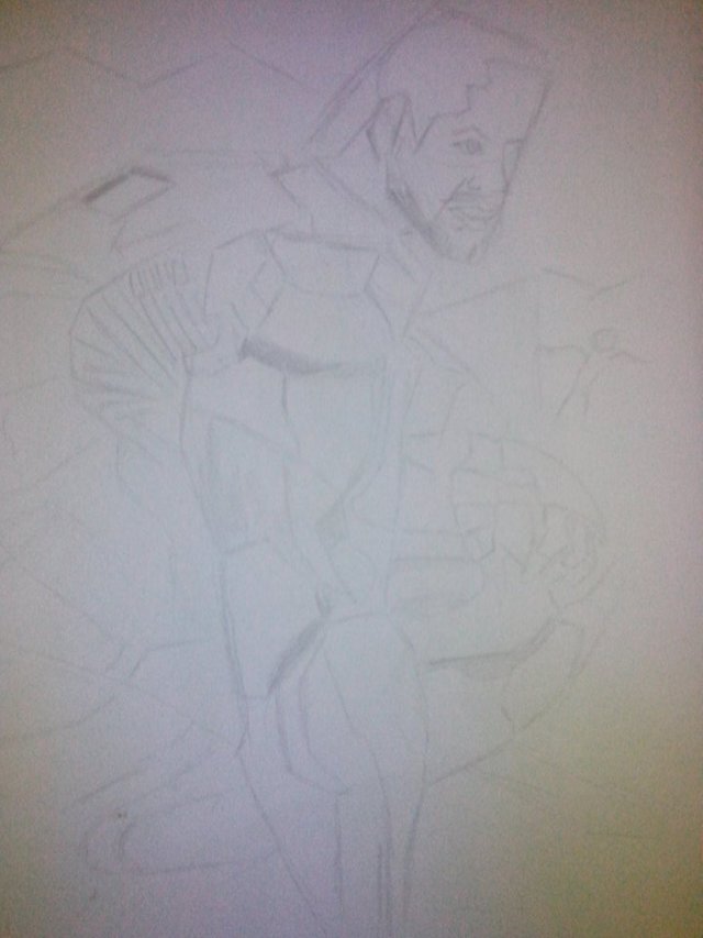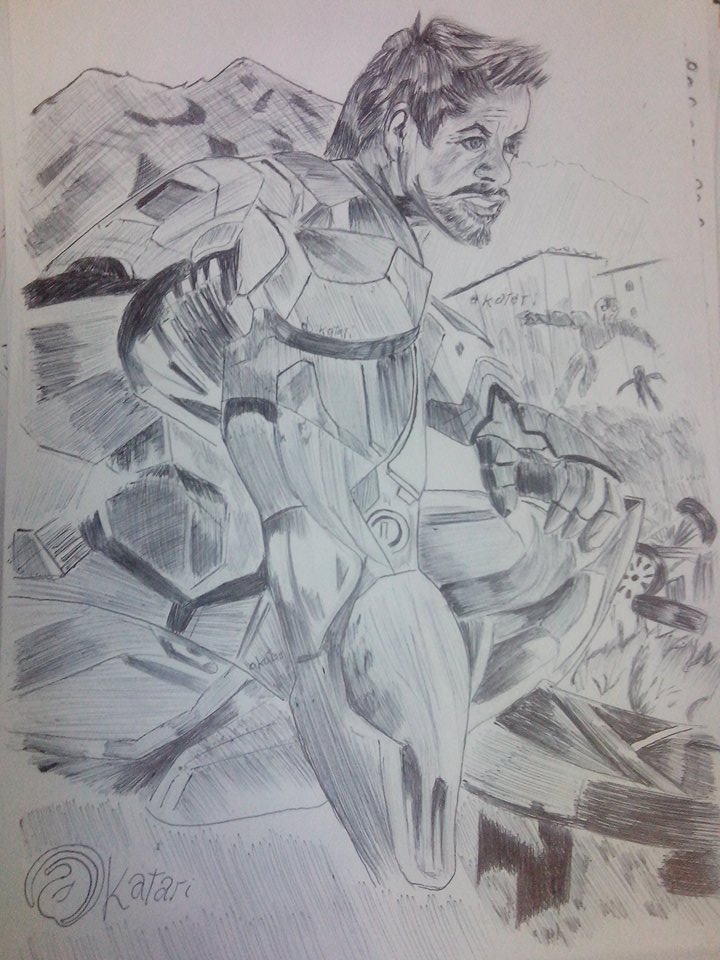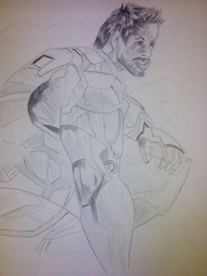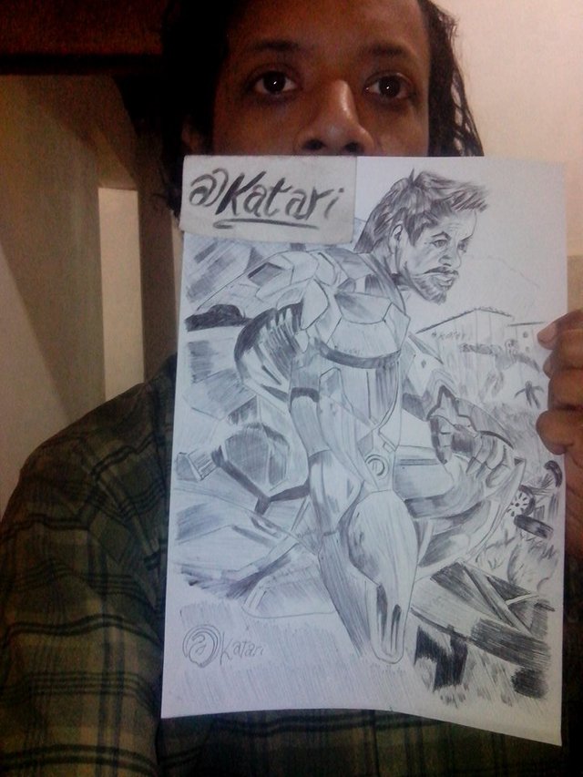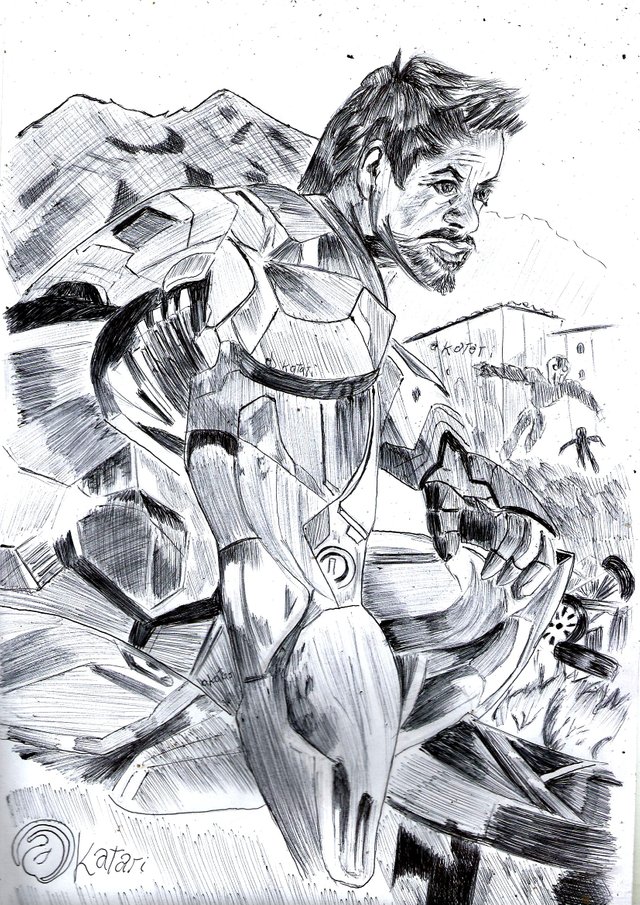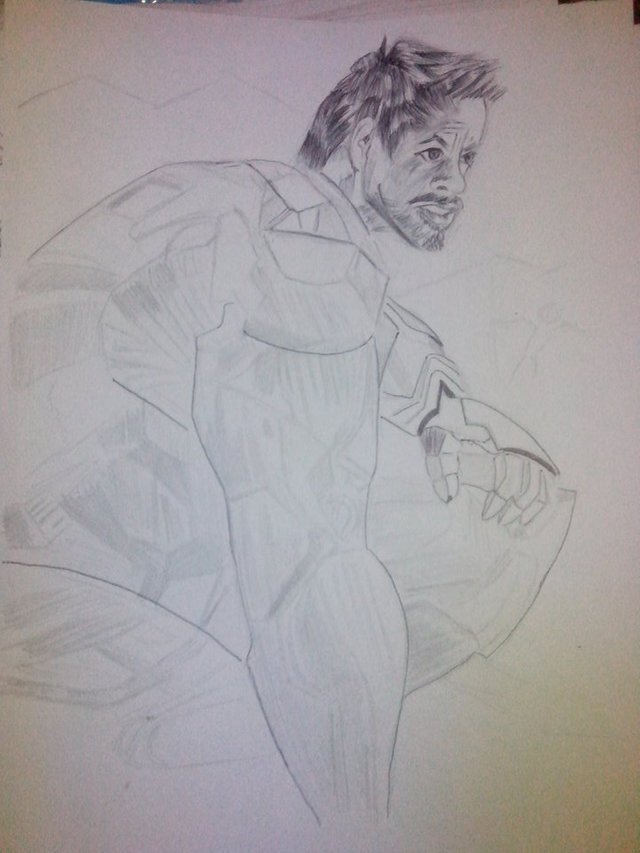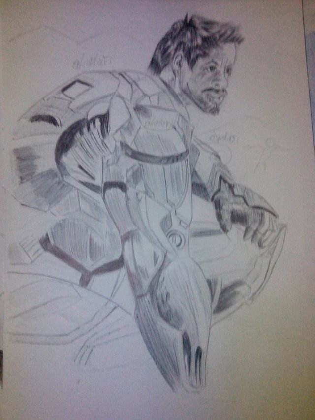 Hello friends of steemit this time I bring you the drawing of Iron Man with his armor starring actor Robert Downey who plays the character of Tony Stark in the film, for many of us who are fans of technology I think Iron Man is a of the favorite films as they lead us to a not too distant future where human beings may be endowed with exoskeletons that will help them move very heavy things or perhaps as a means of transportation too, only hope that it is not used in wars, that will be inevitable. I did this drawing, sketching in pencil with straight lines to give me an idea of the drawing, in a general way I later go on to define certain lines of the armor and to shade the dark areas I also delineate the facial features and the hair to finally spend inking with a ballpoint and to define more strongly the details of the drawing, I hope you like the drawing.