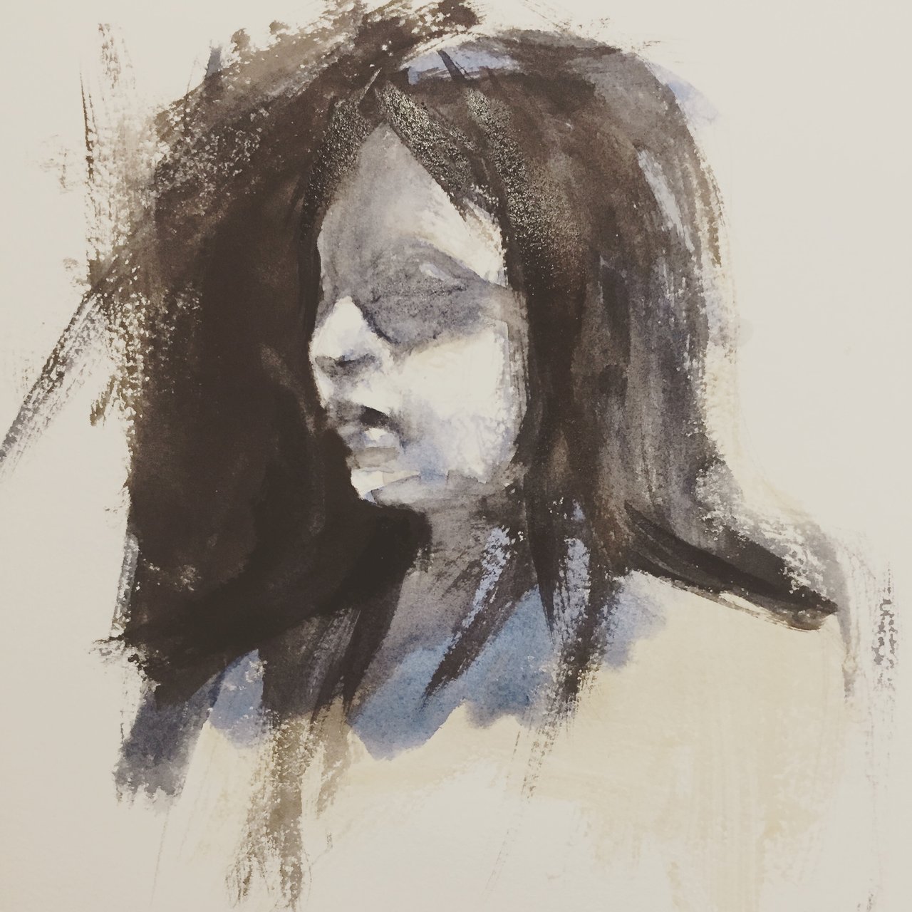 Then, I moved on to shadow shapes and values in watercolor. (Frustrating!)
