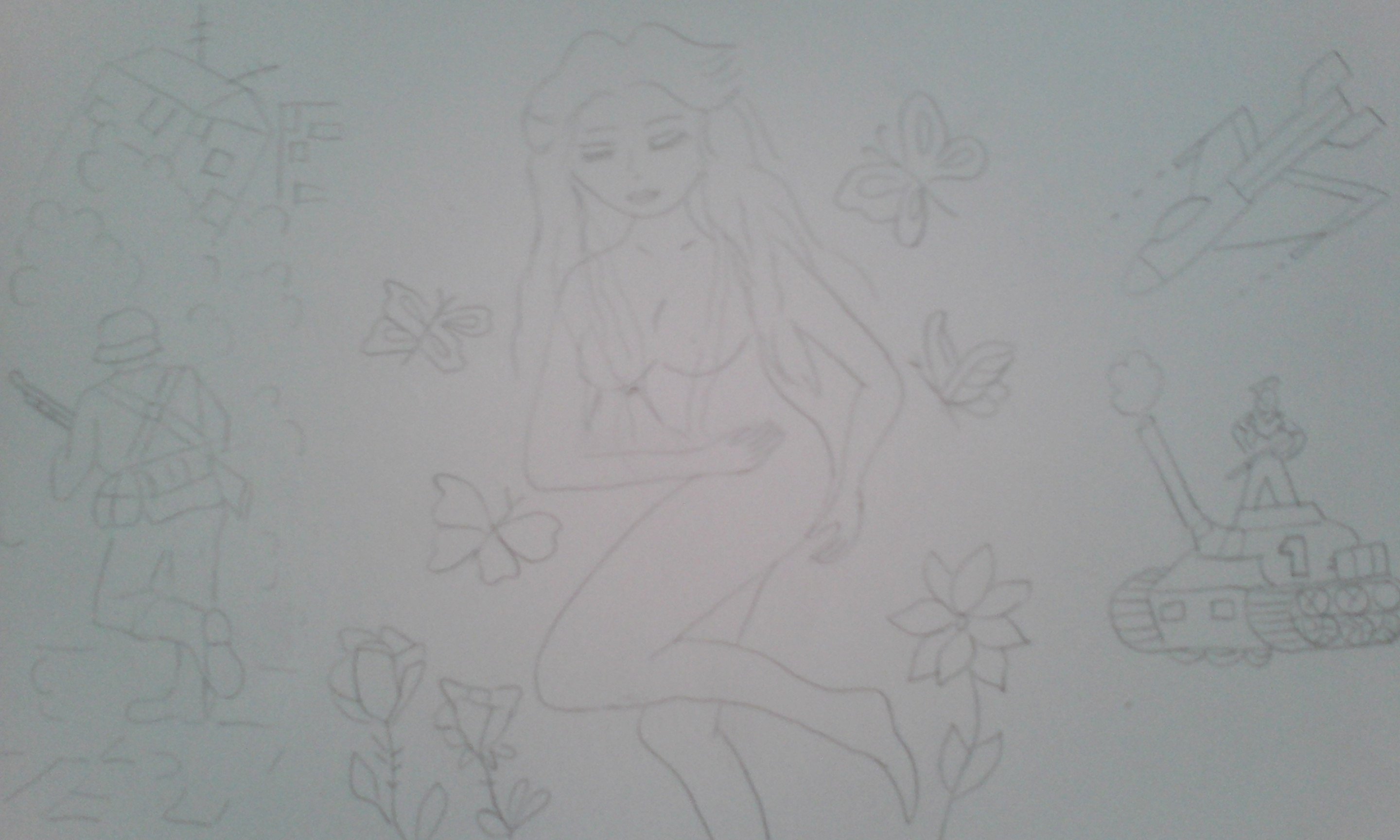 And for butterflies, flowers and women, I used colored pencils, markers and light-colored pastel chalk.