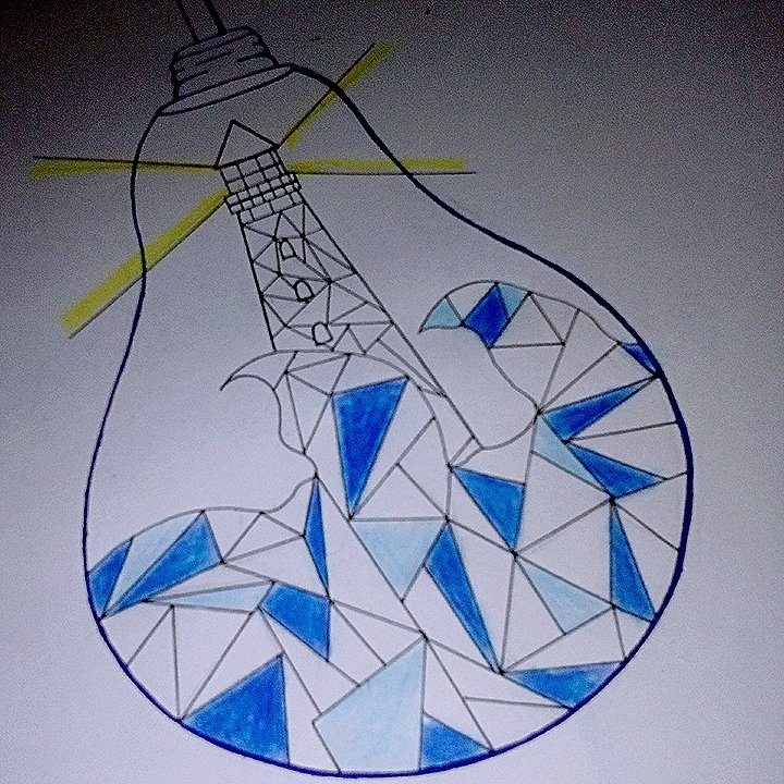 First, draw a shape of light bulb and a fugure of light house in waves.