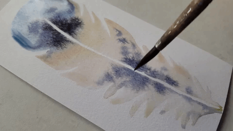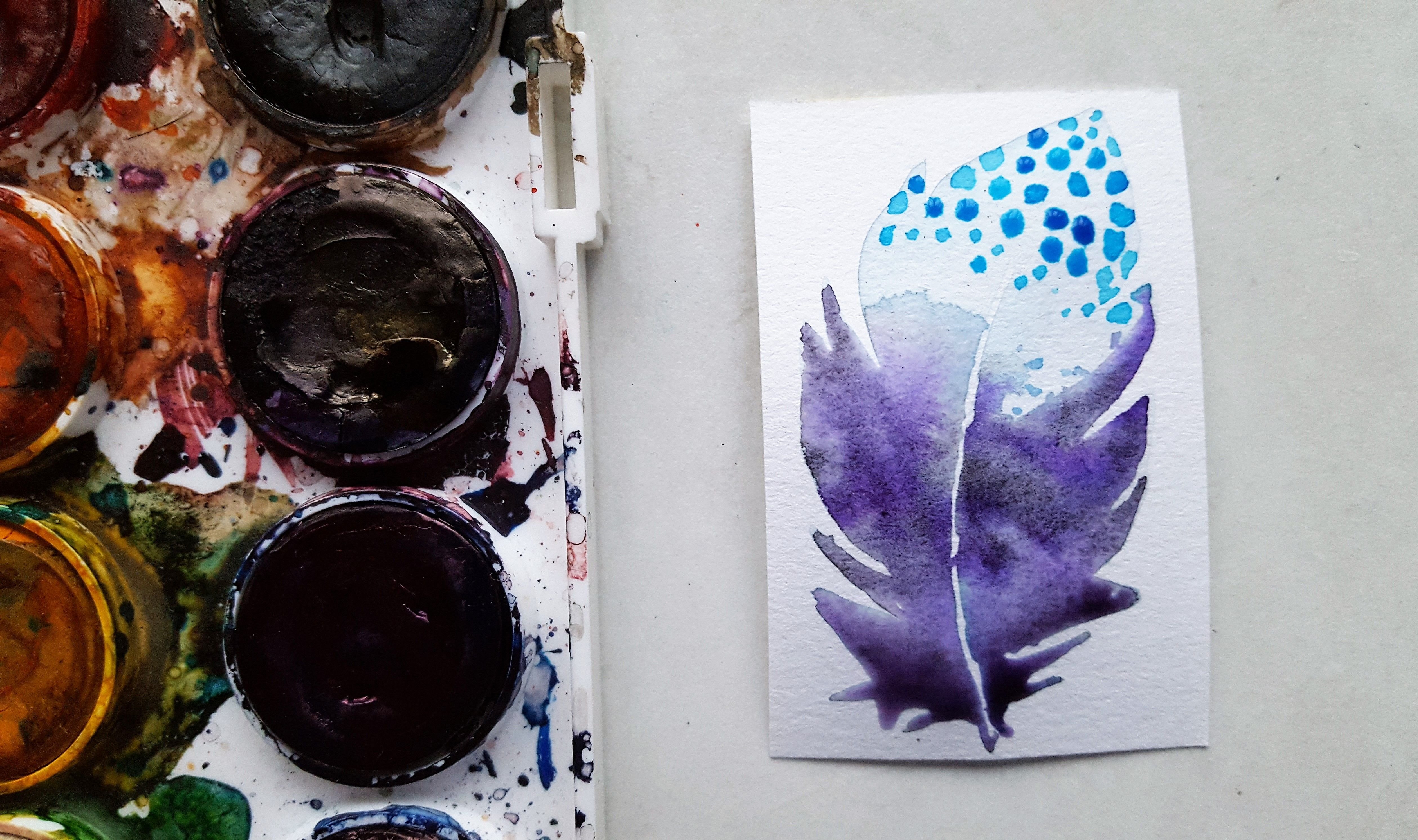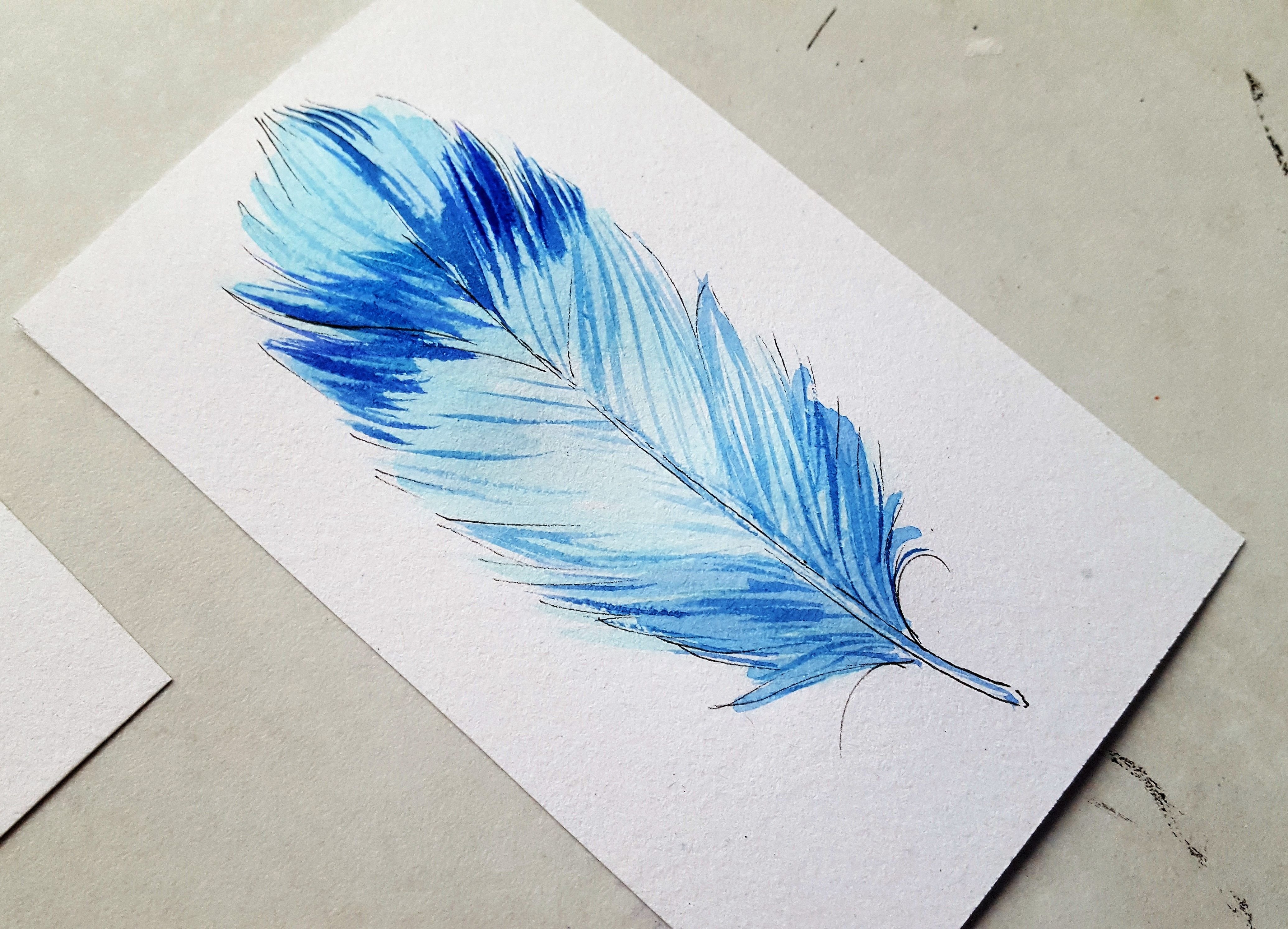 It is quite simple... Just quickly paint the whole feather with water and then add colors. First light colors, then wait till the water soaks into the paper and add darker. They wont spill too much.