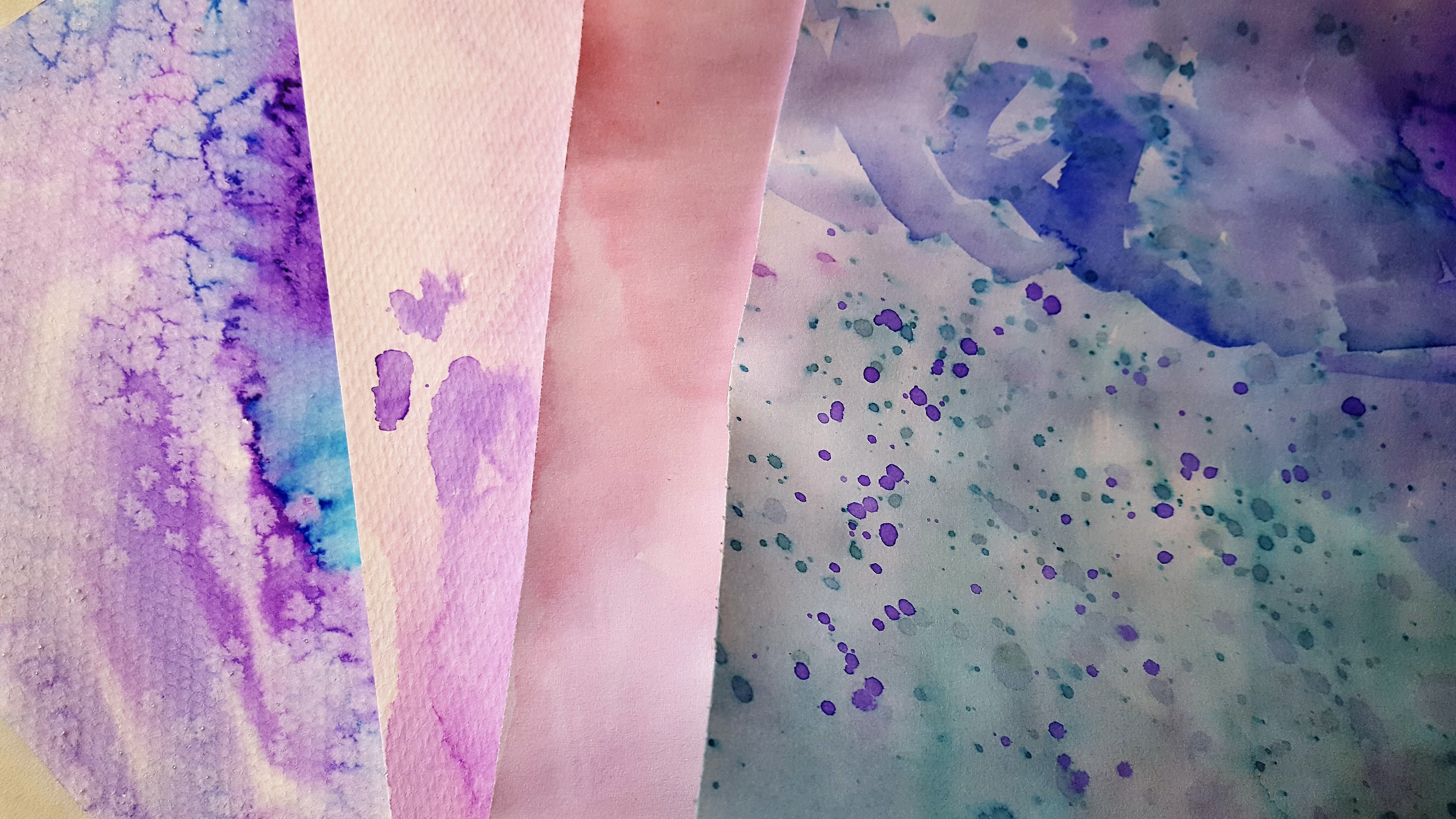 🔹 After you finish with painting there should be a few nice papers. Be sure to make them in different colors/shades. I created papers in pink, light blue and purple color.