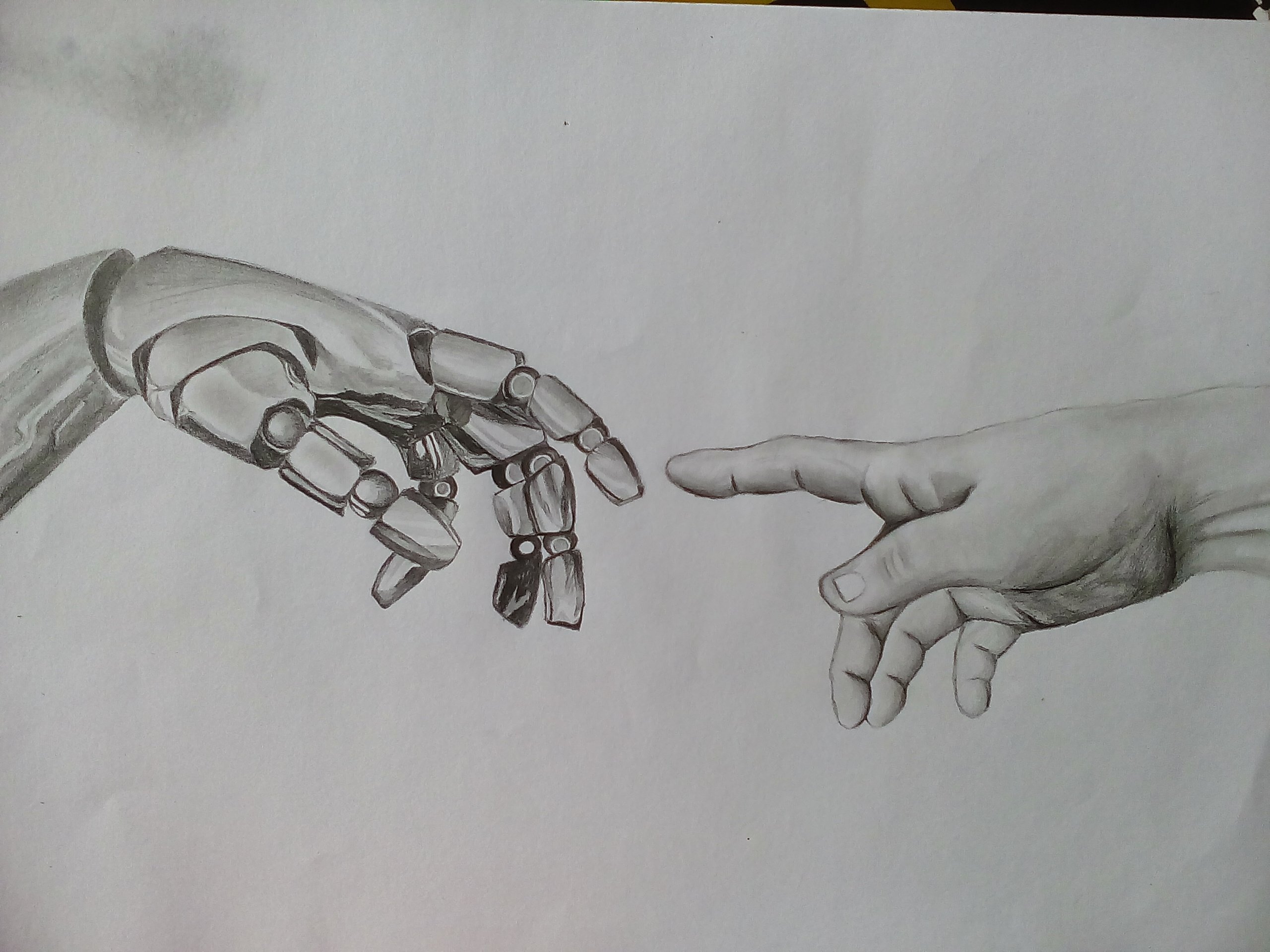 i drew the hands but to give it a dramatic look i replaced adam's hand with a robotic hand. i kind of like it.