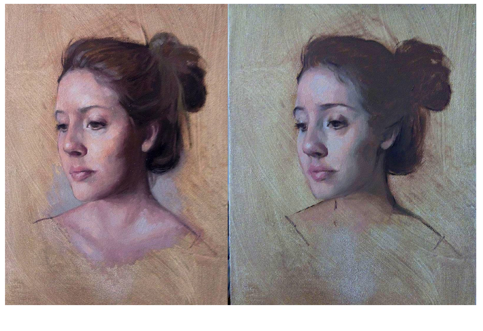 Yesterday I wrote about the sometimes ugly beginning and today I'm writing about the more enjoyable ( in my opinion) second layer where everything is starting to melt into place. One of the big benefits of summer in Portugal is that my oilpaintings litteraly dry over night. This is great because if it's one thing I don't like its painting on top of half sticky paint.