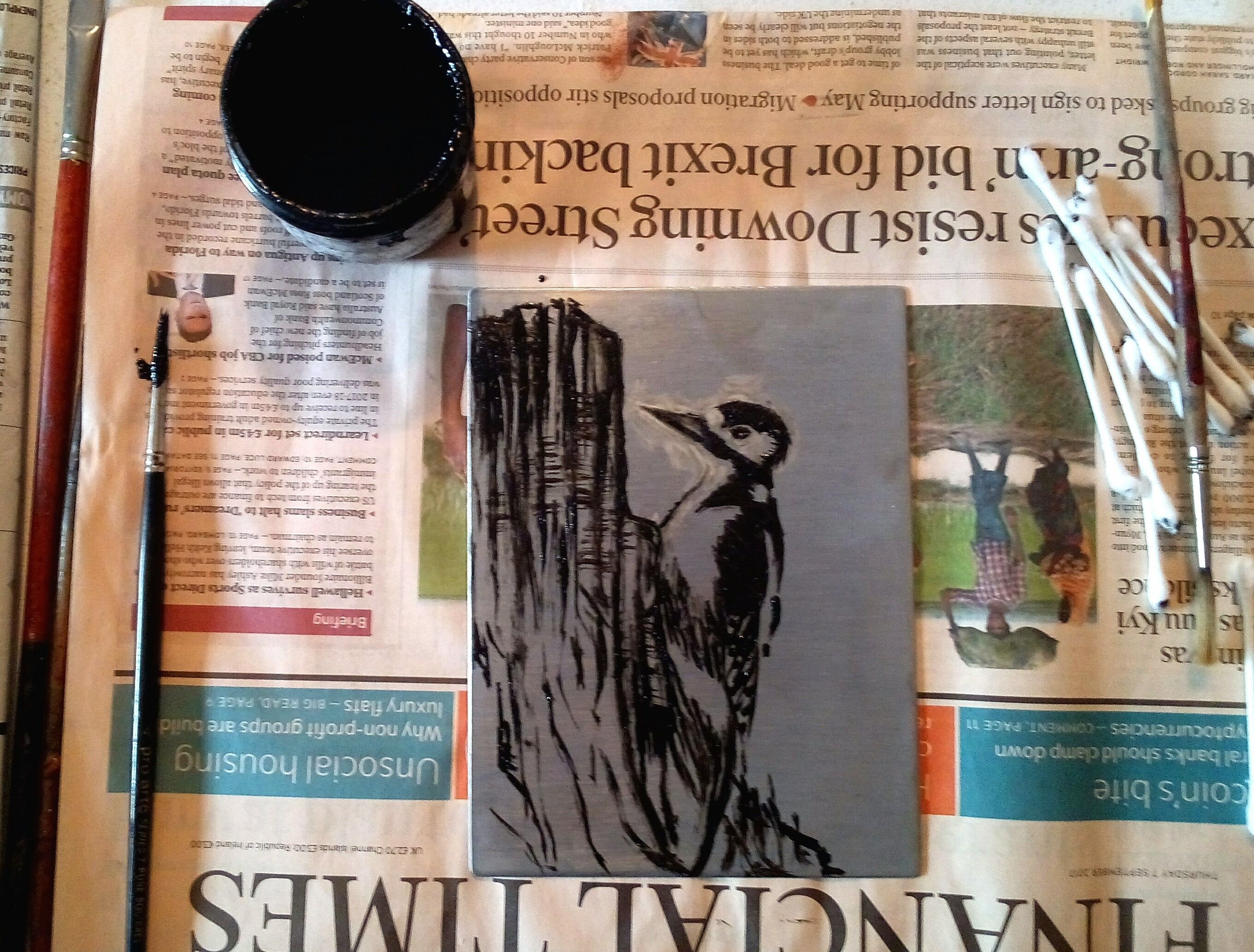 Now it's time to paint! 😄🙏 I had so much fun, but one thing I found challenging was that you should not work with too thin brushes because then they won't give a strong enough mark to resist the acid. Basically, they'll get lost. So strong, clear brush strokes!