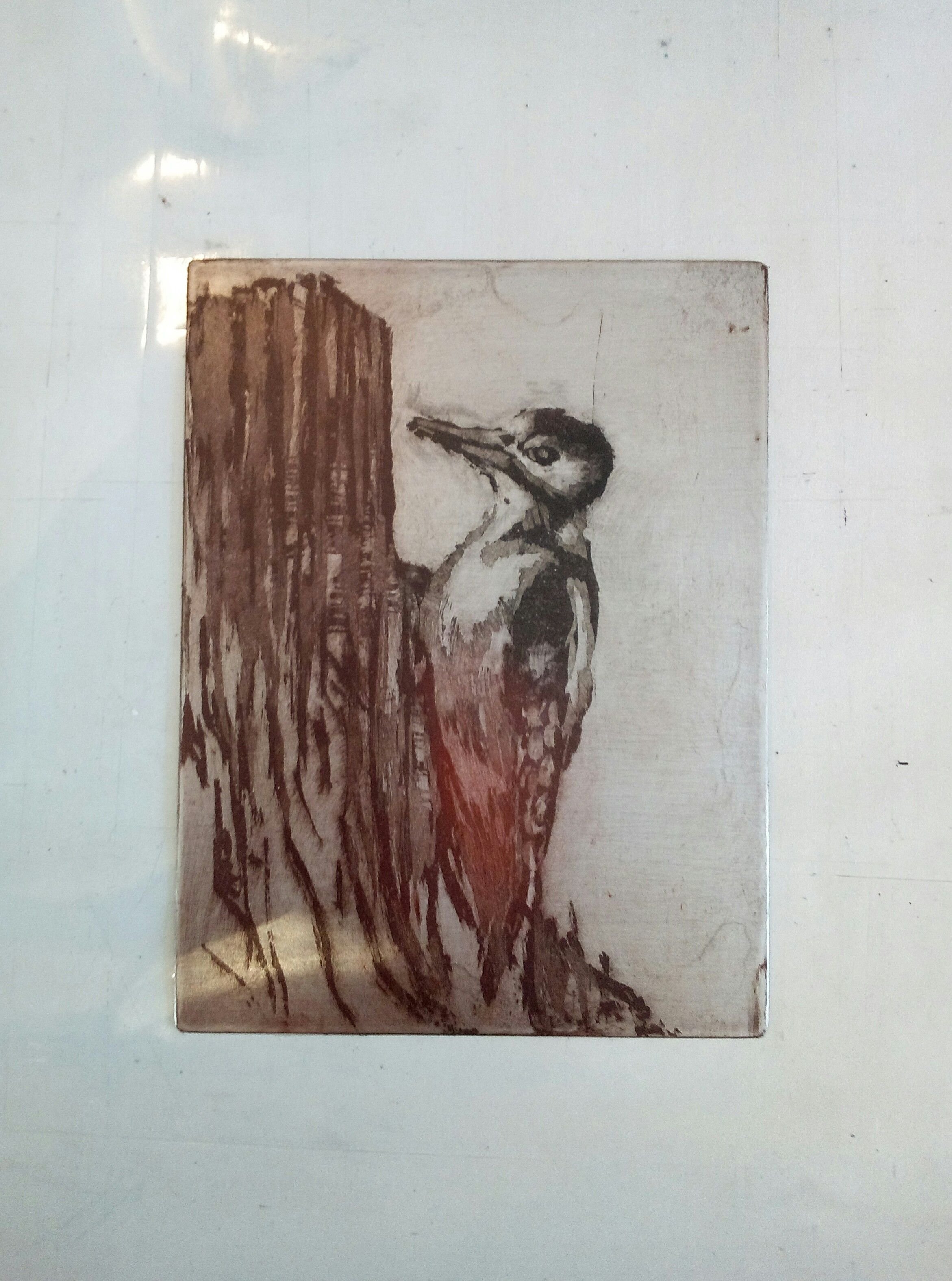 Sugar lift print next to the zink plate which I made the sugar lift on.