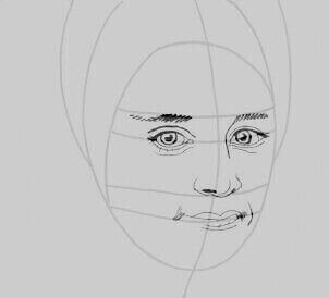 Draw across the lines a, b, c and d as I have shown to represent the eyebrow, eyes, nose and mouth respectively.