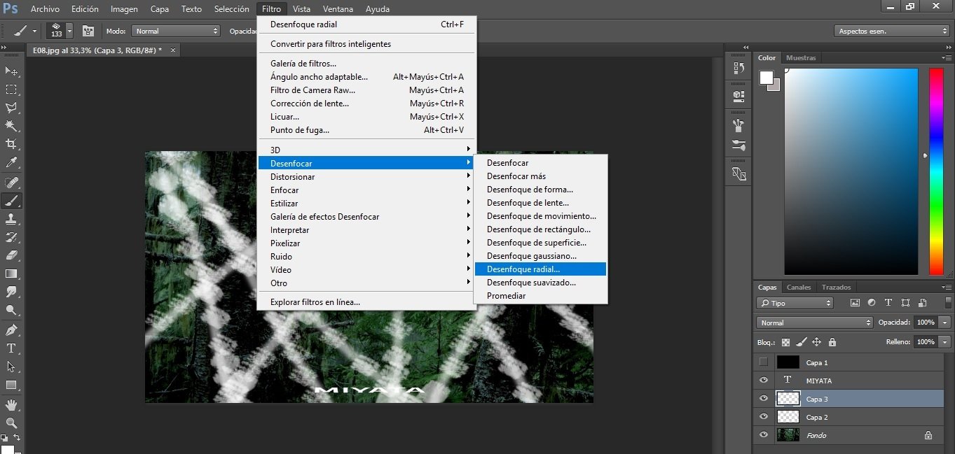 Once we finish marking the rays, we go to Filters> Defocus> Radial Blur