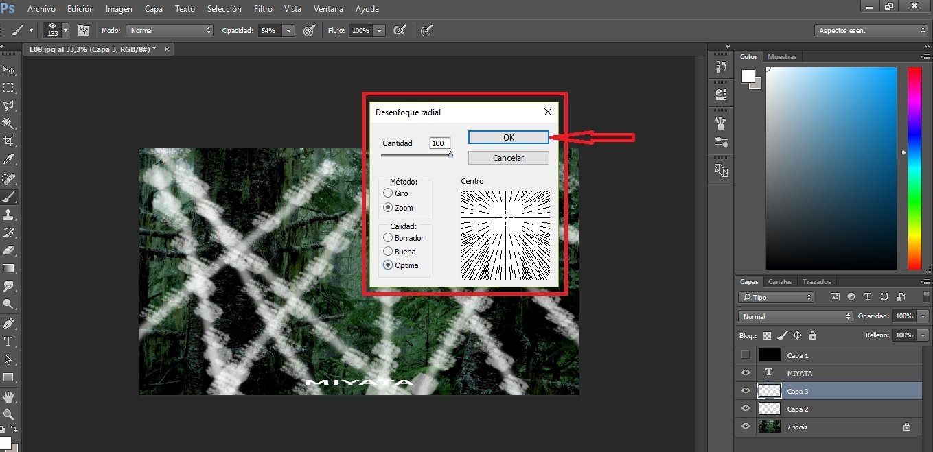 When we click the radial blur we increase the whole amount, we give zoom and optimum or good, which they prefer, practically the same, a little more quality or a little less.