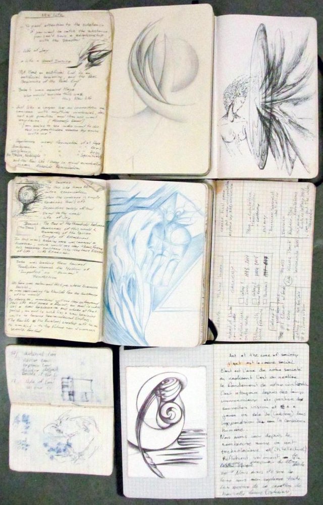 A mix of notes, sets plan, telephone, address, work plan, drawings, writings, list and so on.... a mess....