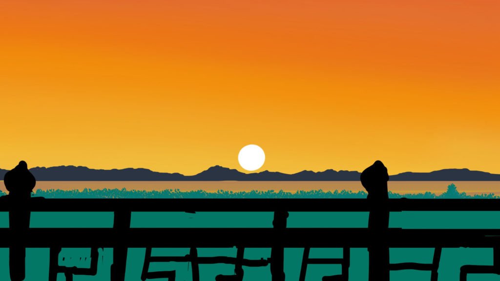 I use first person point of view. Standing in the tower and looking to the sunset.