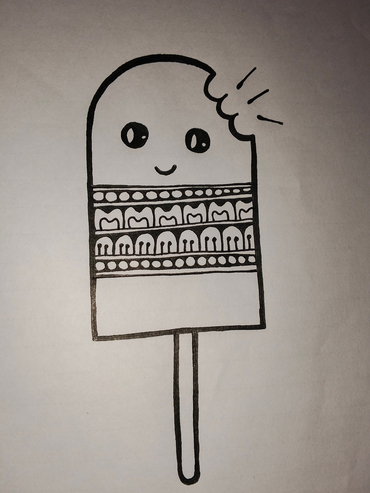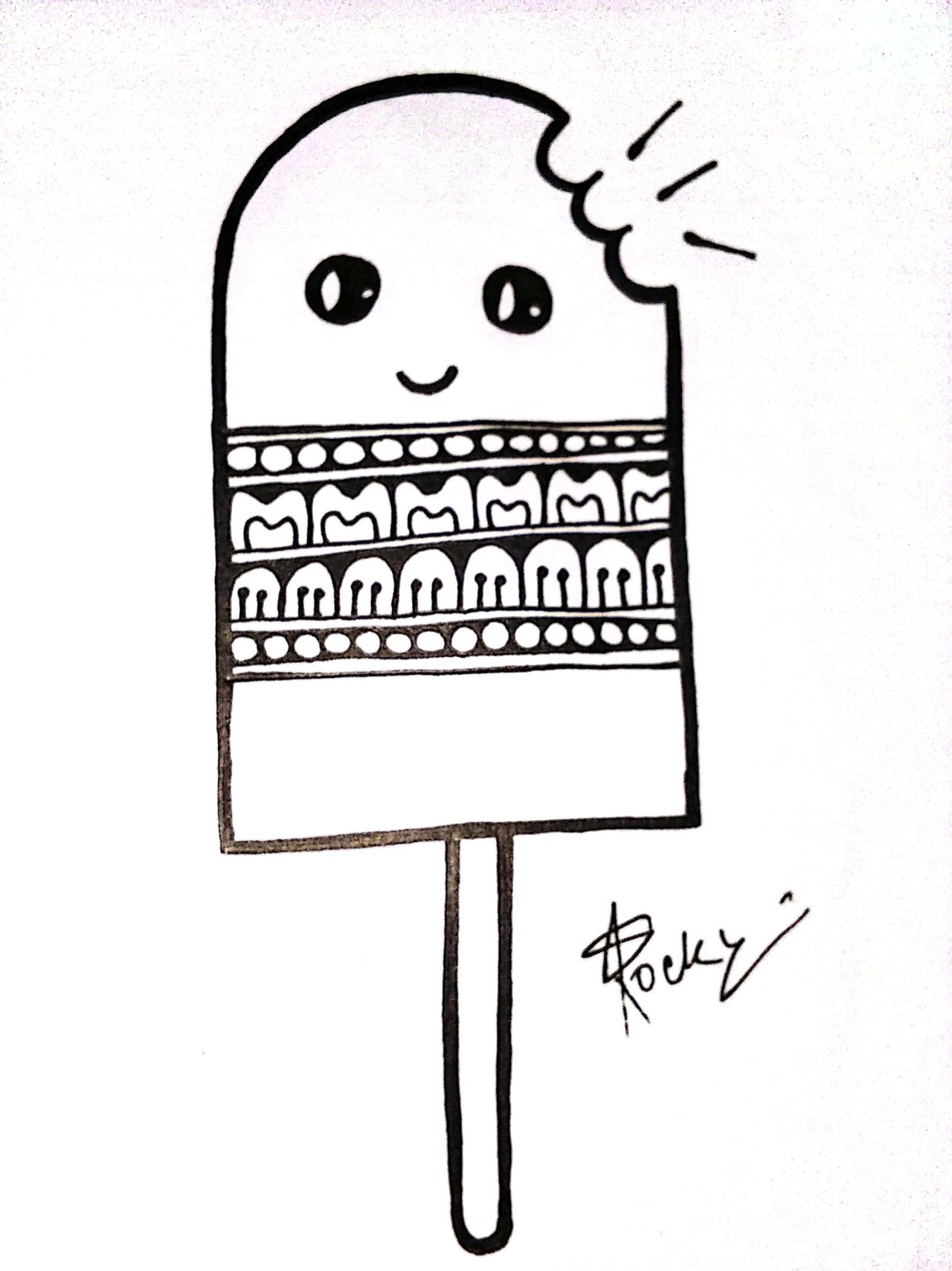 প্রথমে আমি পেন্সিলের সাহায্যে সুন্দর করে একটা আইসক্রিমের স্কেচ এঁকে নিলাম।