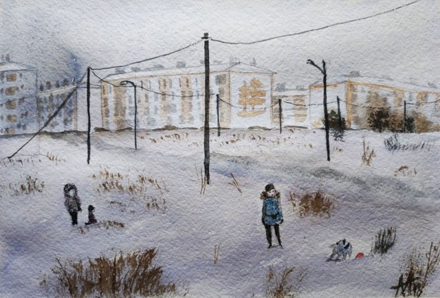 Now the foreground. There is a girl, a dog ... bushes and drifts) Everything, as we used to see in the winter))) I think the comments are superfluous. Since with the figures I do not always get everything smoothly, and without them the plot would not be complete ... I had to add.