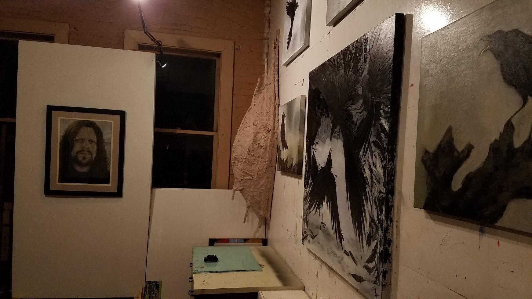 Last week we spent a couple of days building some walls for Amanda's art studio. Right now it has a kind of a funny theme going on since she painted a bunch of ravens for an Edgar Allan Poe exhibit a while back.