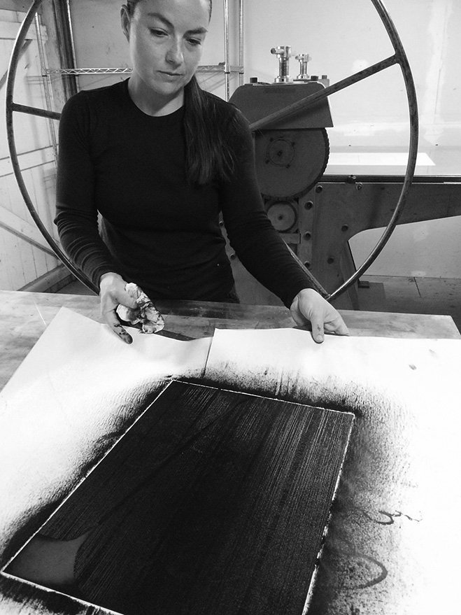 The process of making these involves editing and overlapping ink and images. She uses grids, sewing templates and other organisational materials to create system in which she can drawn upon, quite literally and figuratively. As you can see below, Elvia often explores repetition and reuses printing plates to make unique works of art that can't be replicated by any other creative. Sometimes she can't even replicate them.