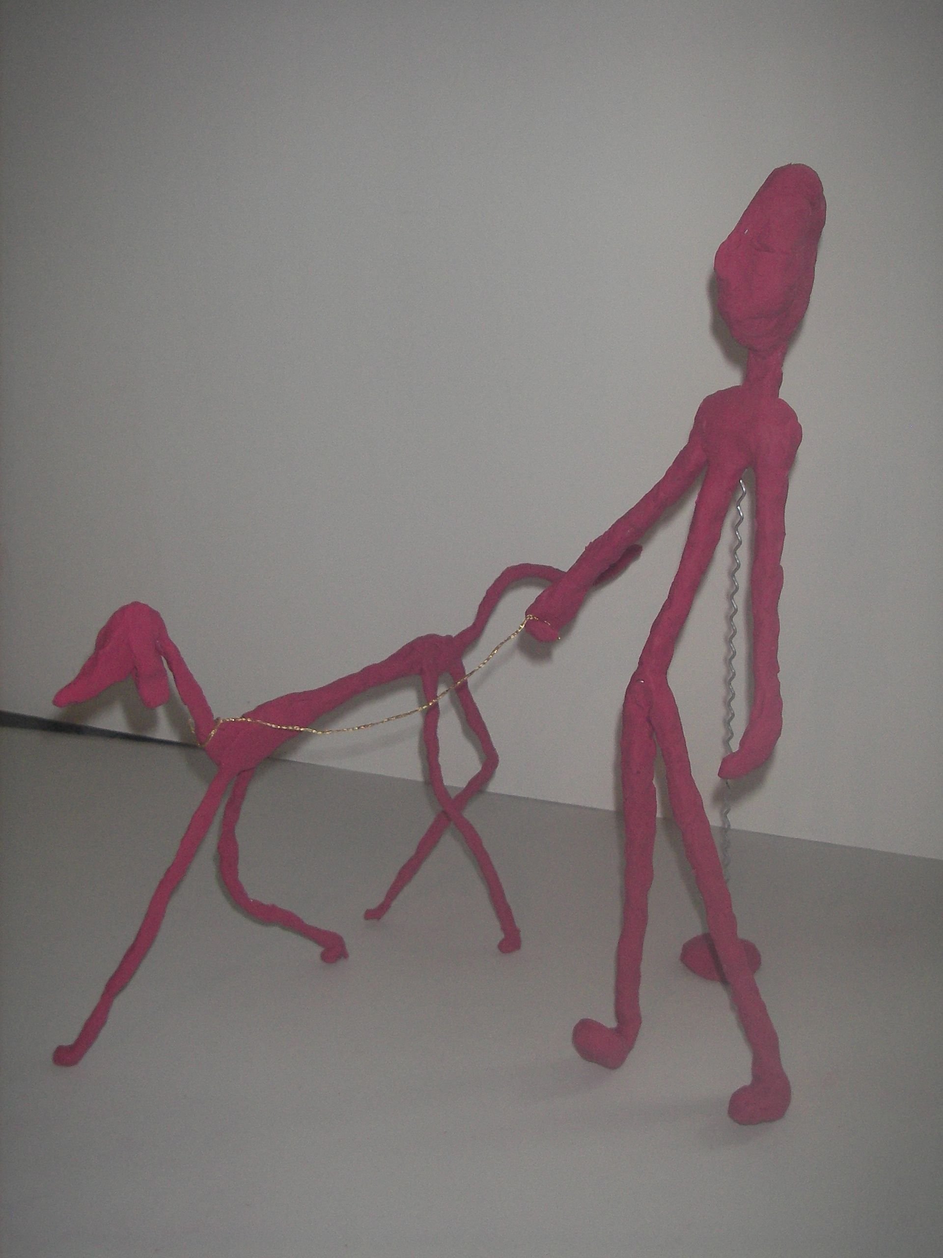I made this sculpture in the style of the late Alberto Giacometti. I admire his work so much.This is my entry for Category 2. Sculpture - The title of my work is "Man and Dog". The size is: height = 35.5 cm (14 inches), width = 30.5 cm (12 inches), depth = 17.75 cm (7 inches)- I made this today, date 26 July 2017