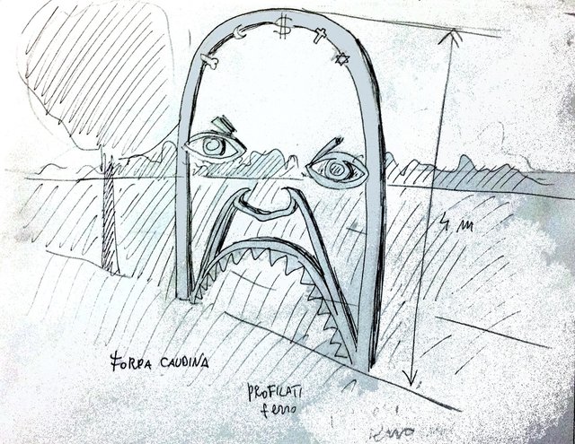 Sketch for a giant Caudine Fork (it's a provocative sculpture I'm working on)