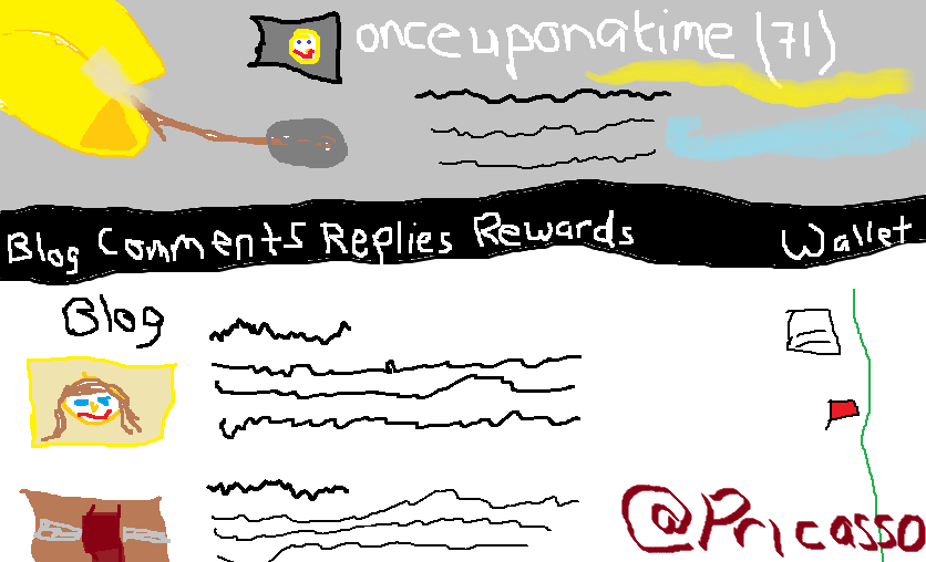 Earthings I have been very quiet for a day, I lost all inspiration :( I was browsing steemit today and guess what? Again I was inspired by a most wonderful steemian @onceuponatime and so I decided again in his honour to create a most wonderful masterpiece. He is running a most wonderful contest guess what is behind the door https://steemit.com/contest/@onceuponatime/the-end-of-the-road-and-behind-the-mystery-door-contest#comments why not try and put in an entry there? This gave me most wonderful inspiration so again I put my magical fingers, donkey hair brush, skunk juice paint and silk canvas to great work and again came up with a most perfect rendition of his profile to honour him..