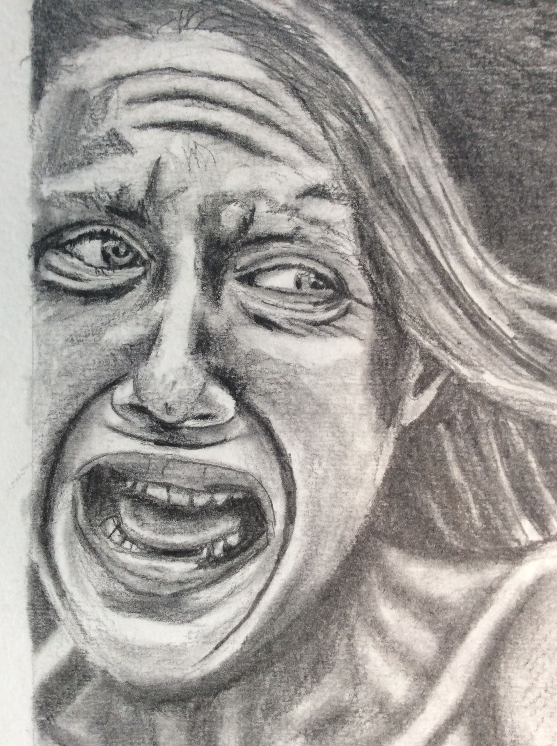 At first I thought it was an engraving. She looks so disturbed... You captured the emotions so accurately!