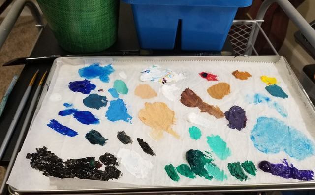 This is the same palette I made, with paint that's been on there for over five hours! I also had left it until later in the evening without the lid and most the paint was still wet! Now, sometimes the top portion of the paint gets a little dry, if this happens spritzing the top with a fine mister will help with that. This depends on the thickness of your paint.