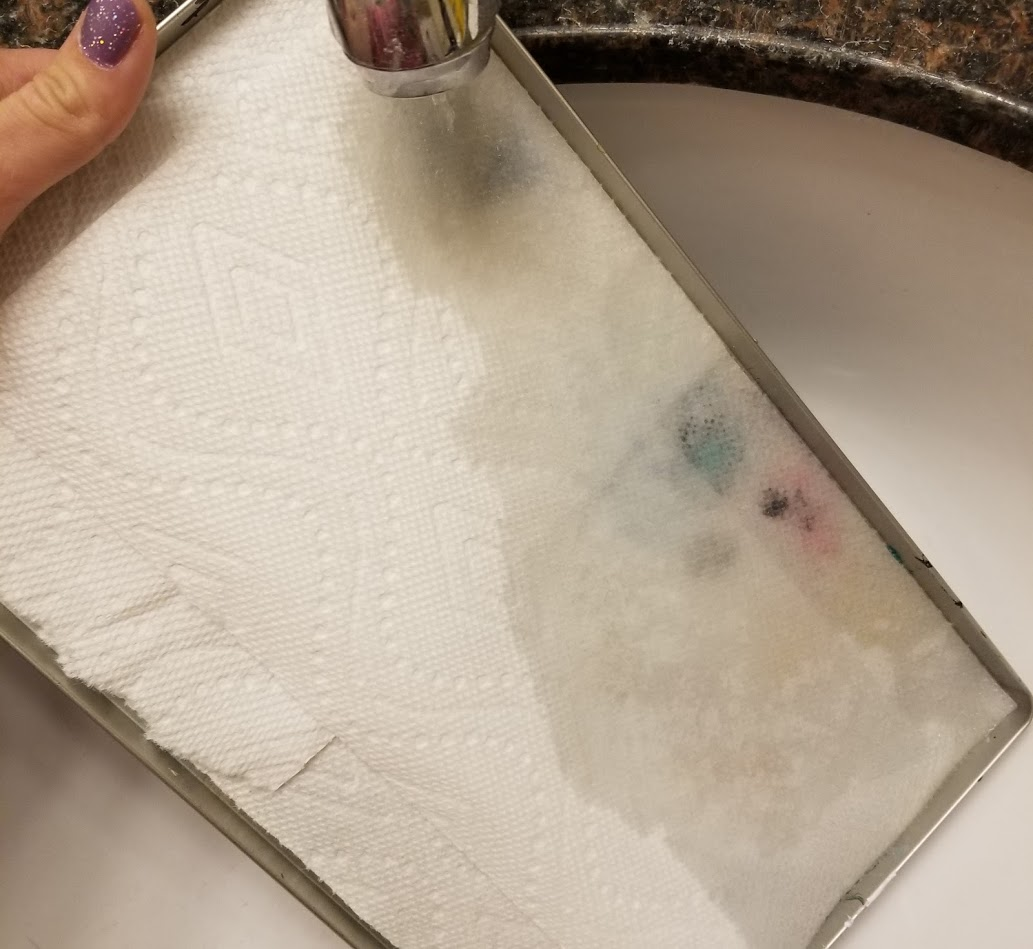 Next, you want to get the paper towel completely wet! Every inch of it needs to be wet. As I mentioned you can use any surface that can take on water.