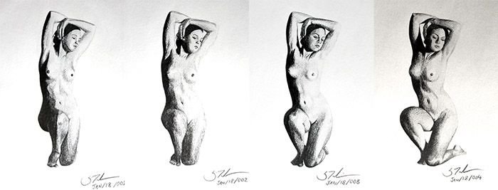 Last night I had the chance to draw one more frame for the animation for my new project. To sum it up, I'll be making 24 drawings of the same pose from different angles and then putting them together into an animation that gives the viewer a 360° view of the model.