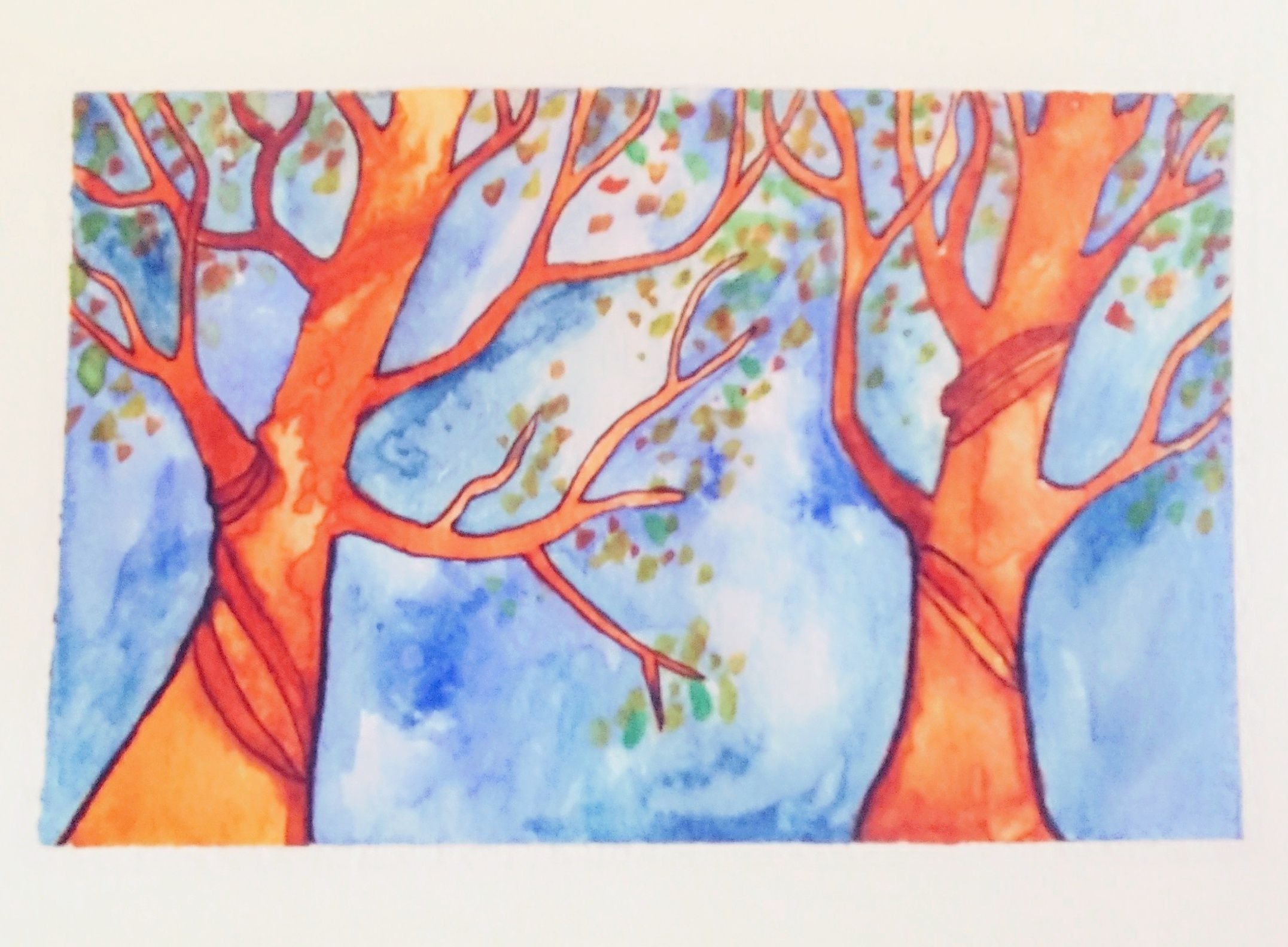 Often there's beauty in simplicity. This is the case in @sheletor's painting of trees against a clear blue sky. There's a very nice use of complimentary colours in this piece.