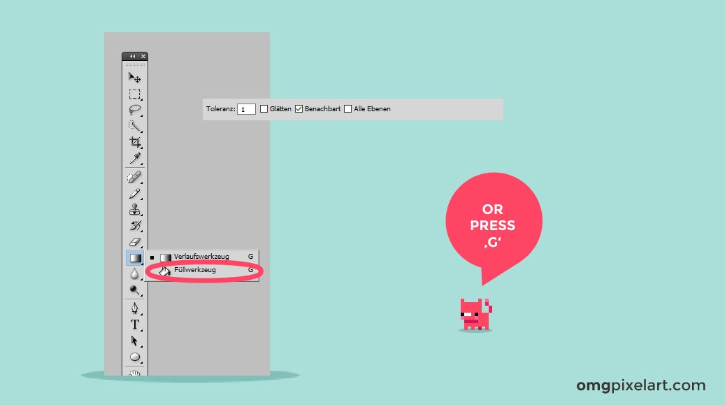 Press “G” and you will select the paint bucket tool. If you have never used to paint bucket tool before Photoshop is going to select the gradient tool. To change that all you have to do is hold your left mouse key on the gradient tool and select the paint bucket tool from the drop down menu. But like the brush and the eraser it has this smoothness as default. While paint bucket tool selected go to the top bar and uncheck “Anti-alias” and put the tolerance down to one.