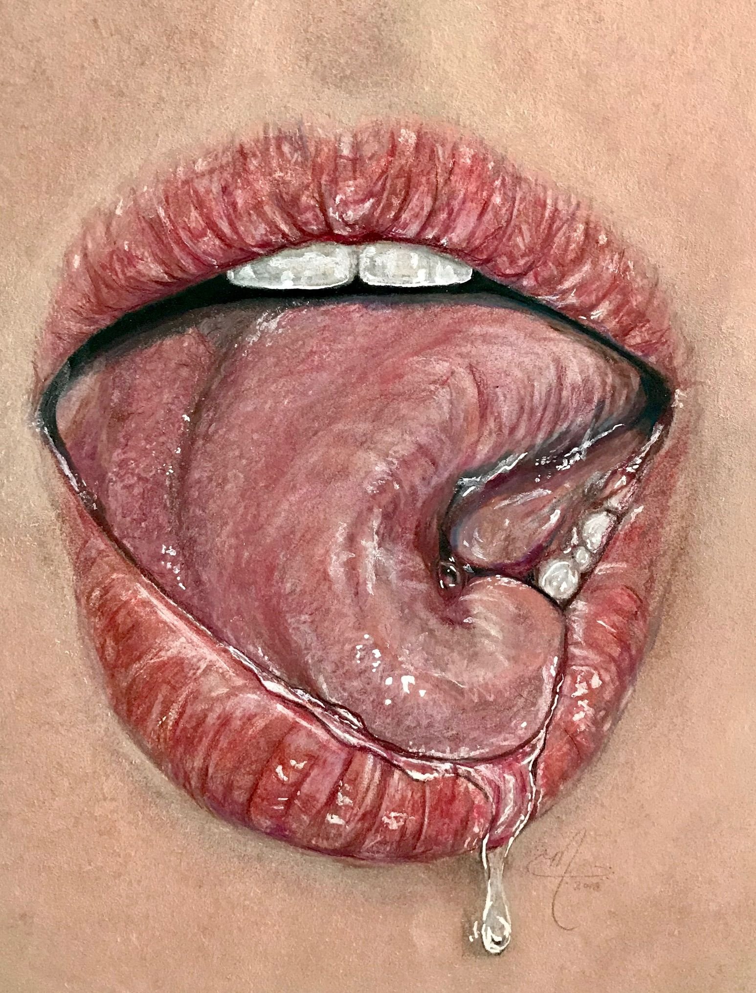 That's an awesome looking art! great skill especially on the saliva, she got the highlights right and it looks realistic because of that. Congrats on that!