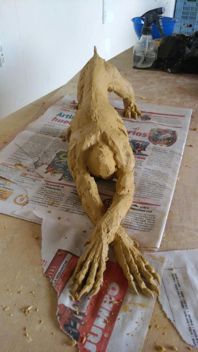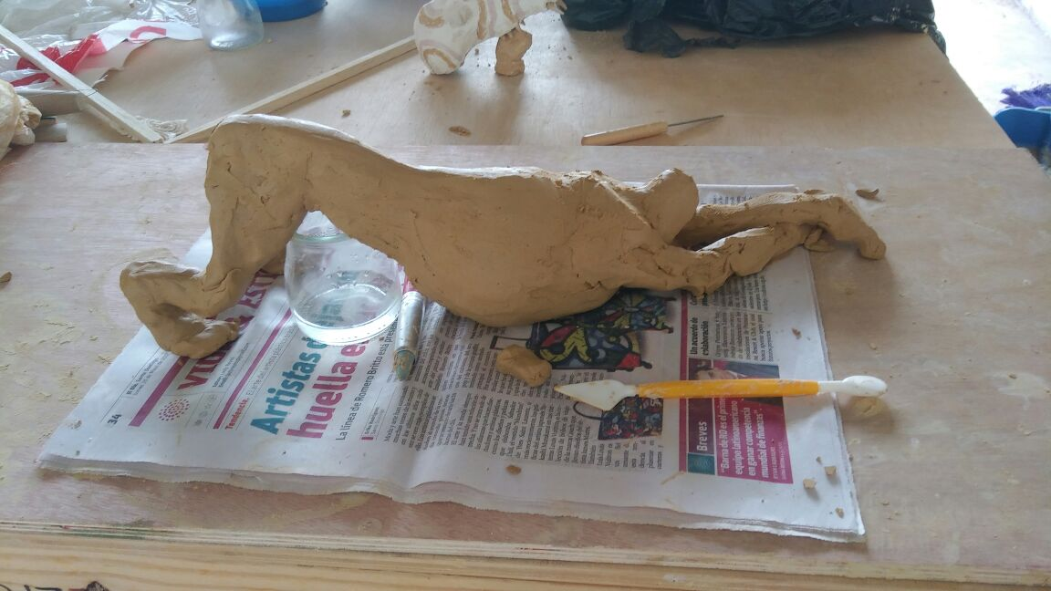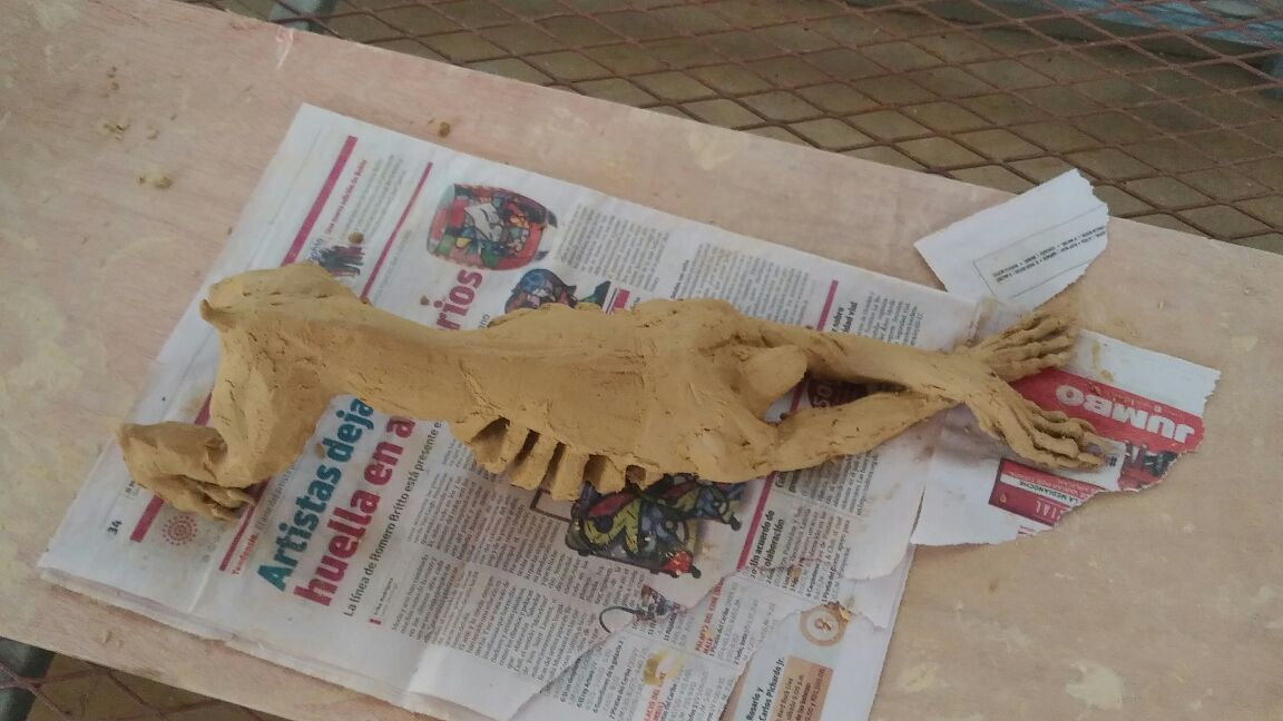 I needed to leave it rest for at least 30 - 45 min because the clay was too soft to keep working (for the ceramists, yes the climate is kinds humid-hot this part of the year, also the workshop has a rustic zinc roof and it makes the heat spread, the pieces dry really fast) The ending work was so satisfactory that I was actually thinking about leaving it without the head it was intended it for.
