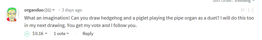 A pipe organ is a beautiful instrument; playing a tune on one without leveraging its massive pedal power is a sad thing indeed! Perhaps this is how friend Hedgehog could pull its weight :)