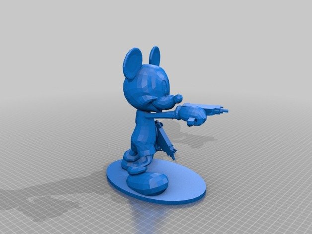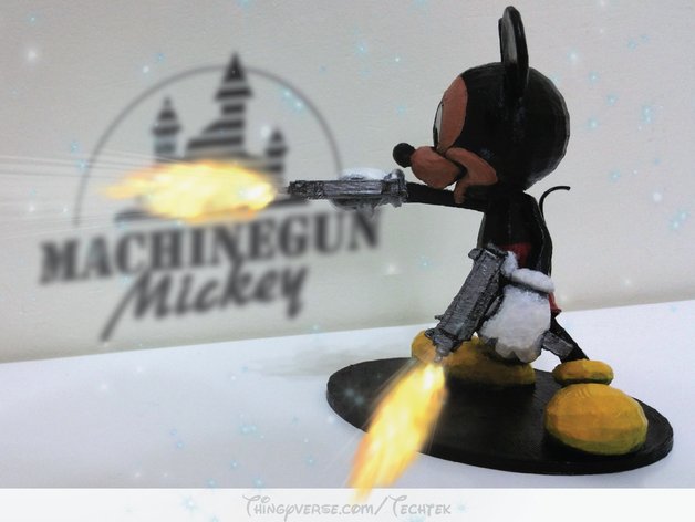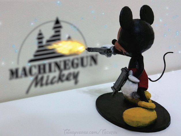 This thought and question started my 3d printing project: "Machine gun Mickey", and after playing with this idea i really wanted to have a model of him shooting a gun on my desk.