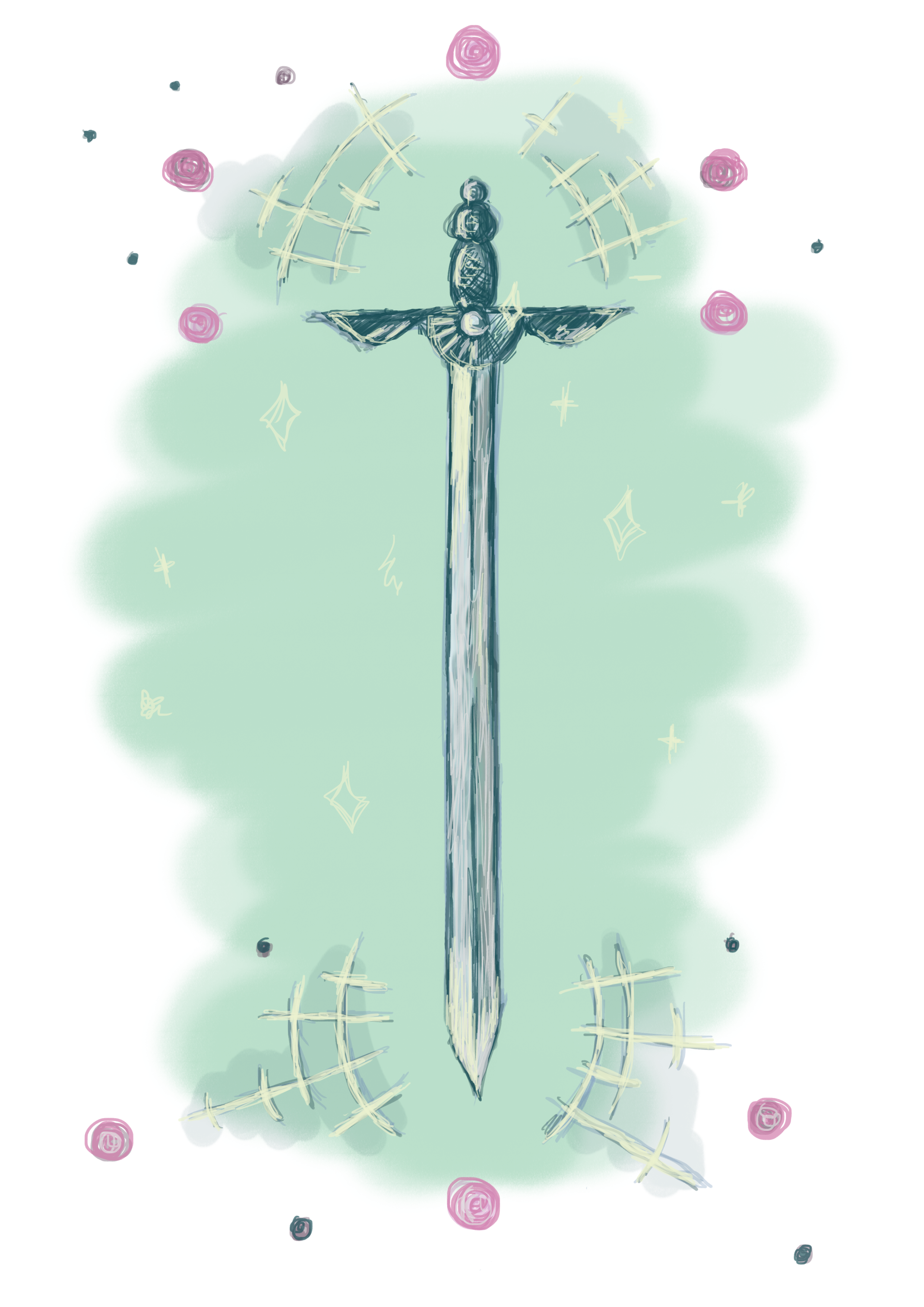 I've been kind of obsessed with drawing swords recently, last year I saw some beautiful sword earrings; I think those spiked my interest in the appearance of them. I've been trying to develop some kinda of sketch or design using a sword as the centerpiece for a while now, I'm happy with the progression!