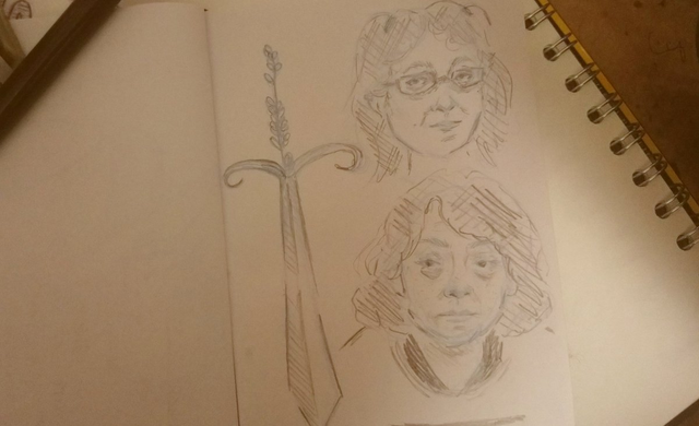 I made these sketches with some erasable colouring pencils, mainly the blue shades, and a HB mechanical pencil.
