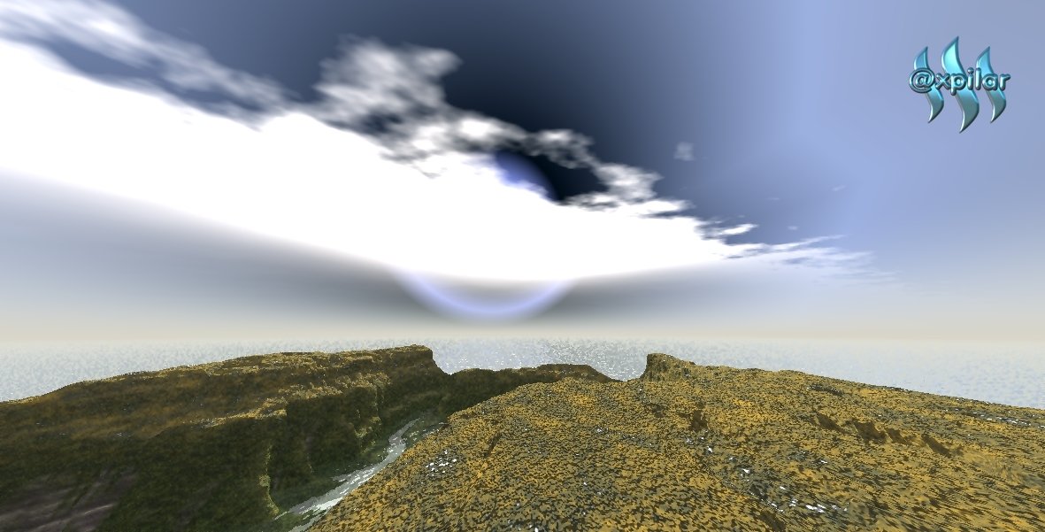 This time the image is almost realistic looking, you presented the beauty of coastal area very well, nice short, green grass that is very robust to Northern rough weather is still cheering our eye sight. I can imagine that there is someone who is waiting for a Ship that i´supposed to come and pick up the person with whose eyes we are seeing everything. He is staring to horizon trying to identify any trace of a ship but unfortunately there is nothing, just endless water and blue sky both of them meet up at horizon. The sky looks different today, but what is there behind the cloud, it must be a space ship, is that a help that the person is waiting for, which is coming not from sea but from the space. Is that his safety ring that is going to take him in adventurous journey. He is ready for that, finally to leave his home place and sink in mysterious adventures :)