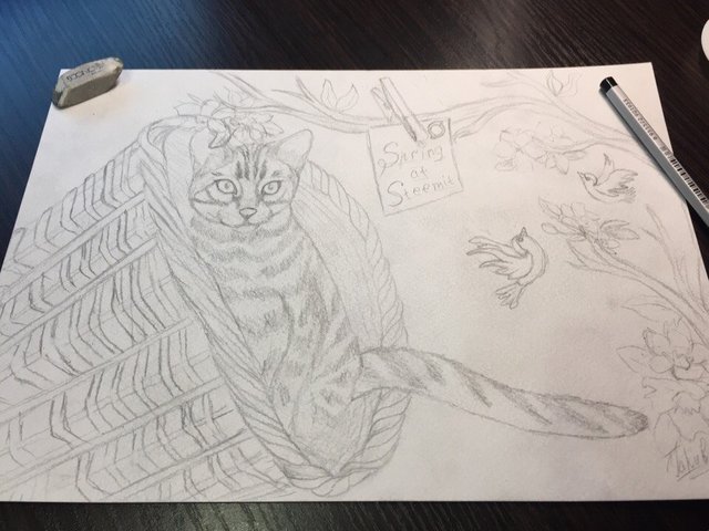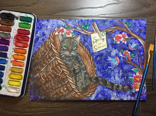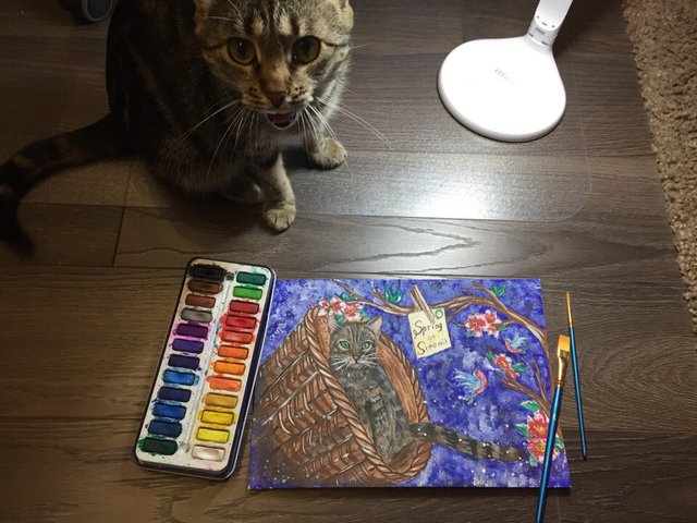 watercolor art "Cat and Spring" I love cats and I love spring. =(^.^)= 🌷