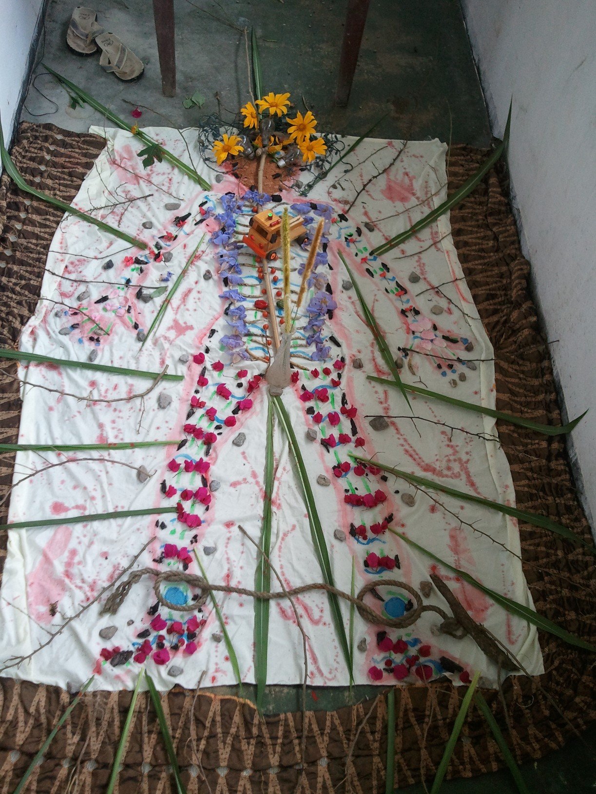 You spread an old broken sheet on the floor. It will be the canvas on which you will work...You take off your sandals like someone who enters a sacred place... And of course it's a sacred place: it's your self.
