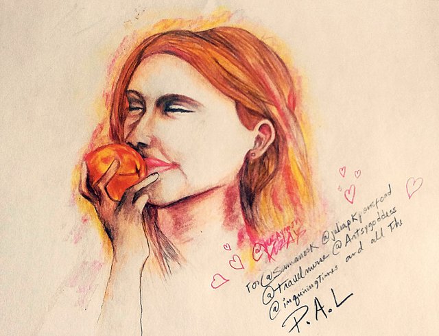 I finish my Peach Draw ^ ^ The P.A.L Community find his power with a secret peach hidden in the binary ocean I don´t understand so much about that, but they give me the idea "Draw a Peach" "Draw a person eating a peach" Thanks for all ur words @sammosk@travelnurse@artsygoddess@inquiringtimes and all the P.A.L ^ ^