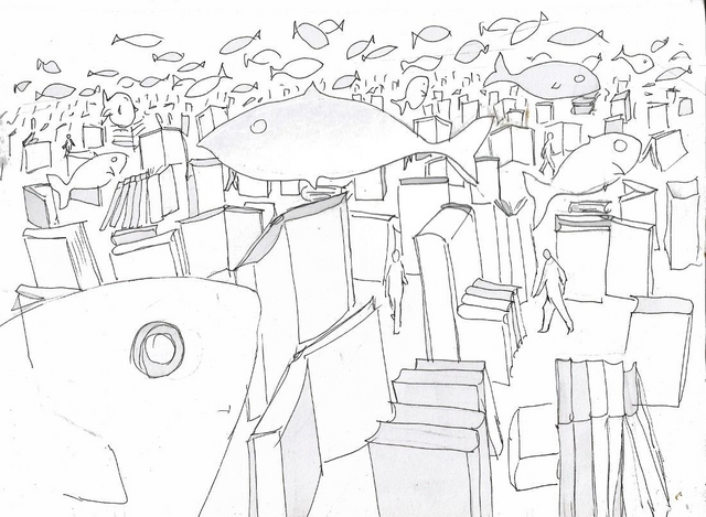 We walk along the seabed in an ocean full of knowledge. Everywhere we look there are things to learn and be fascinated by. Books tower above us like buildings, each one is its own reality waiting to enlighten or entertain us. The fish don’t visit this place for the knowledge. They swim above it without interest in the deeper meaning to life.