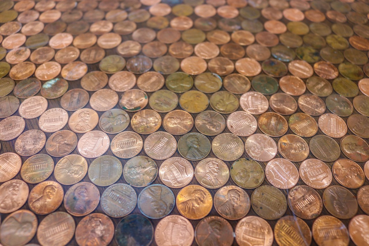 I used an easy to mix Epoxy from Home Depot to seal in the Pennies.