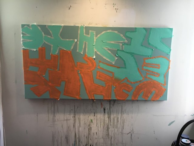 AHA! one last spot i couldnt tape up with the wet oil on there. hehehe. guess ill have to find some other work to do while that ones dries. it usually takes 2 days for oil paint to dry, but it dries quicker on the RAW CANAVS because it soaks up so much of the oils in the paint , YaY.