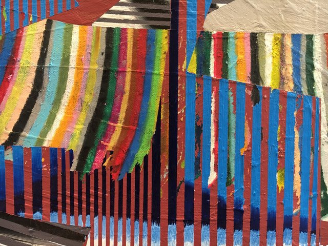 And now my roomate says, "Thats finished! It's done!" Is he right? Should I leave it so simple? Had I the forsight I would have embellished the taped off voids of color one at a time, each a seperate painting in itself. Gee, I waste a lot of materials on Painting, JUST to discover I need to scrap it.
