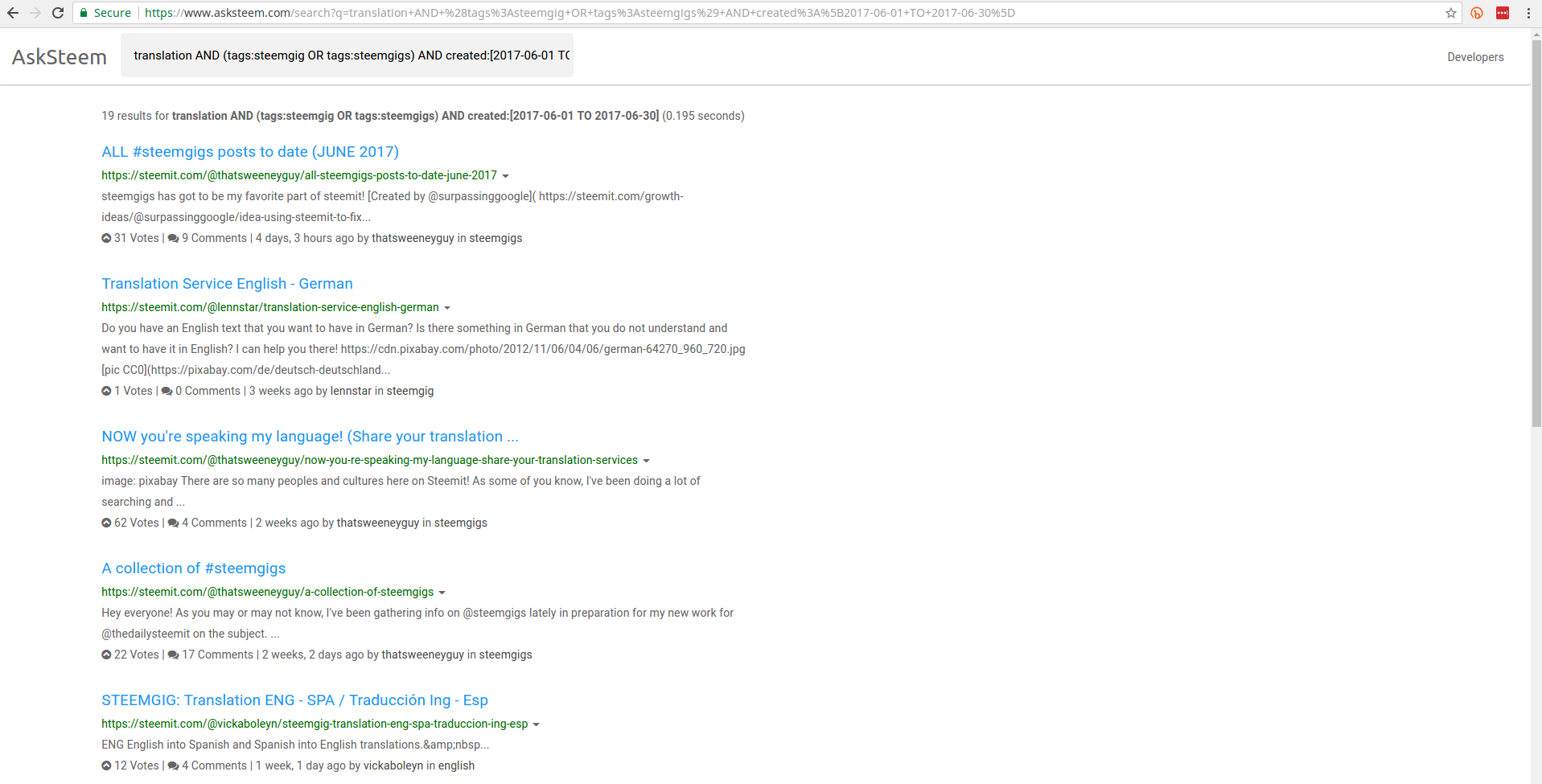 translation AND (tags:steemgig OR tags:steemgigs) AND created:[2017-06-01 TO 2017-06-30]