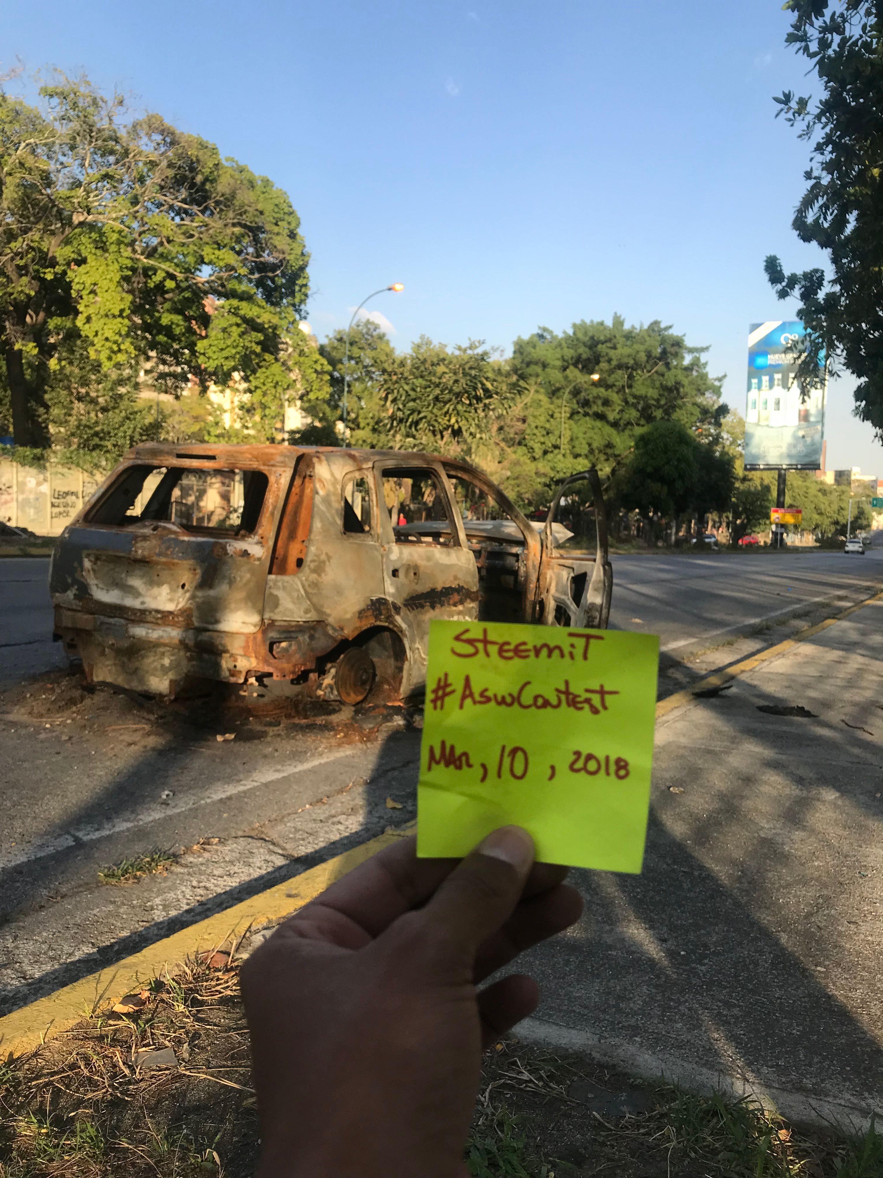 "As you can see is a car burned to the chassis, use it for the contest because it fits perfectly with the theme of the week. Literally I found this shit abandoned while driving my motorcycle through one of the main avenues of Caracas, the capital of my country Venezuela."