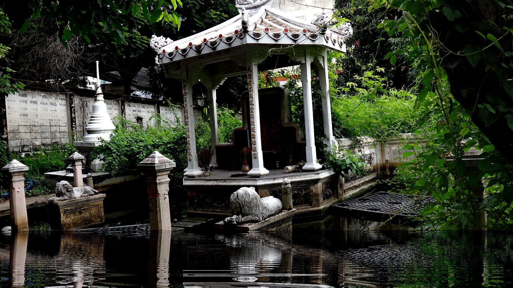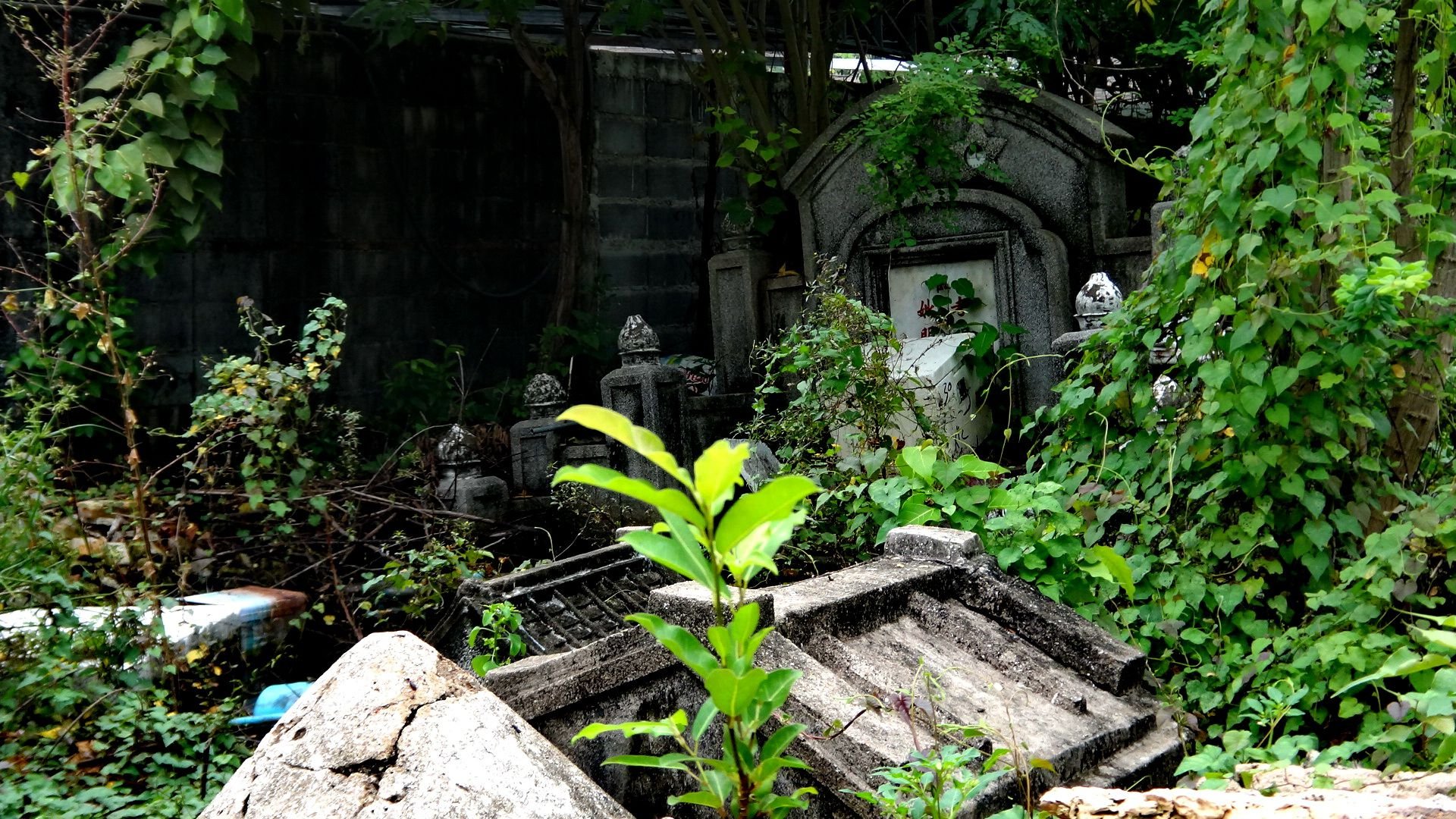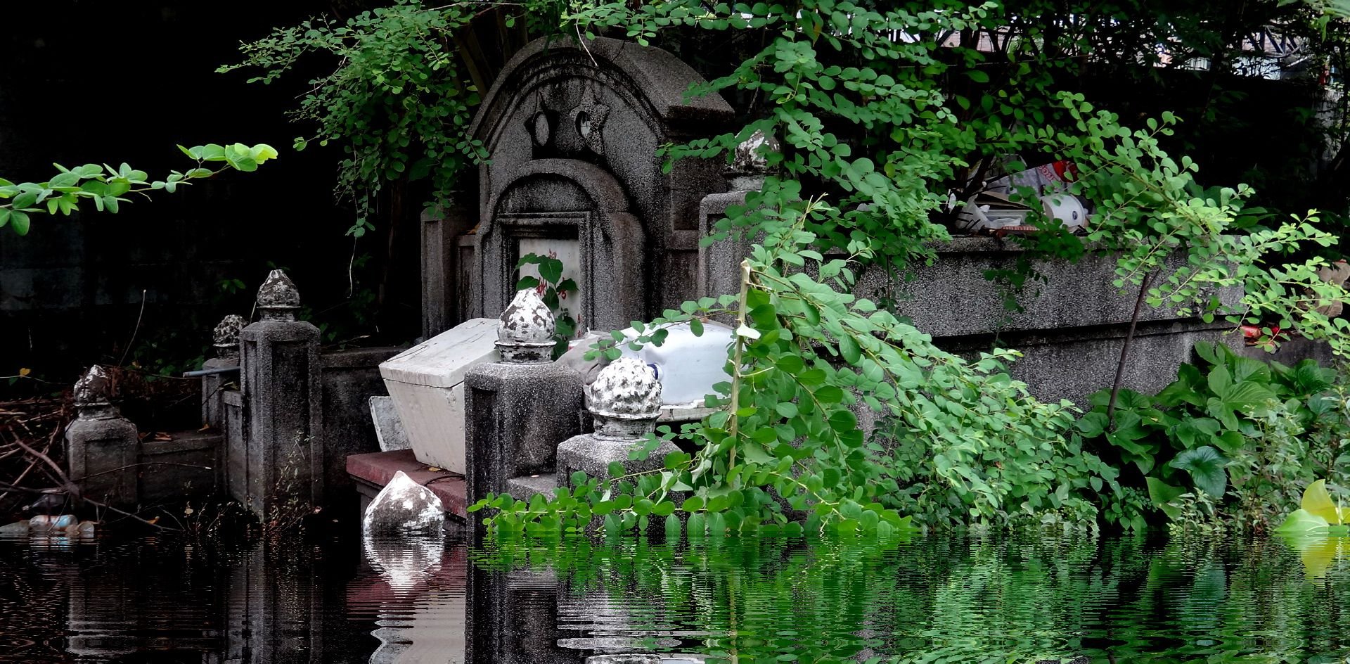 I would have to say this one is about the creepiest one i have come across in Bangkok it's got to be well over 100 years old with most of the cemetery submerged in swampy waters.