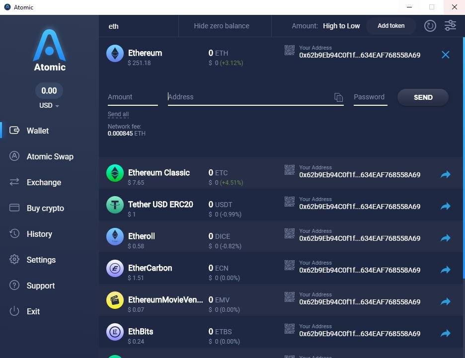 Atomic is a multi-currency custody-free Cryptocurrencies wallet, that supports over 300 other coins and tokens. You can secure, manage, exchange and buy cryptocurrencies in a user-friendly interface protected by a mnemonic seed. You fully control your funds.