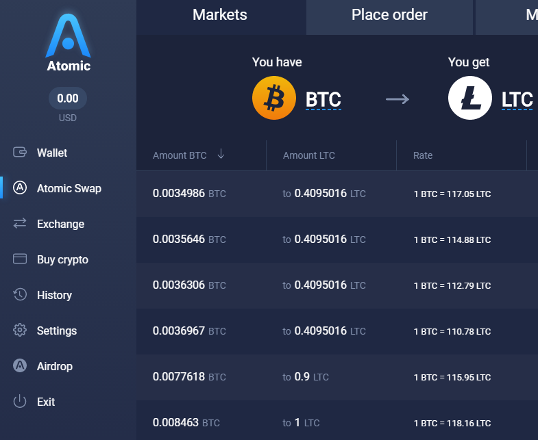 There is the atomic swap segment of the wallet where commercials to swap cryptographic forms of money can be seen.