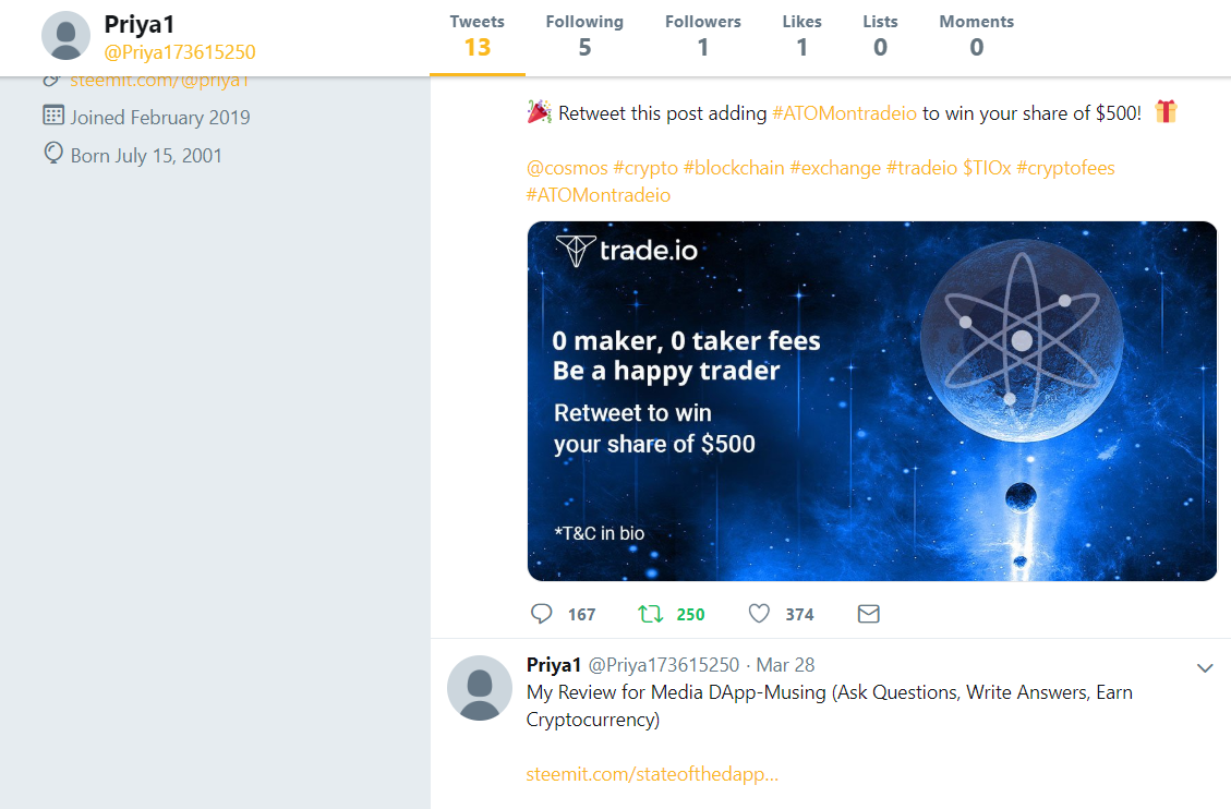RE: TradeIO Lists ATOM Token (Cosmos Network), Participate to Win $500 Worth of $ATOMs!