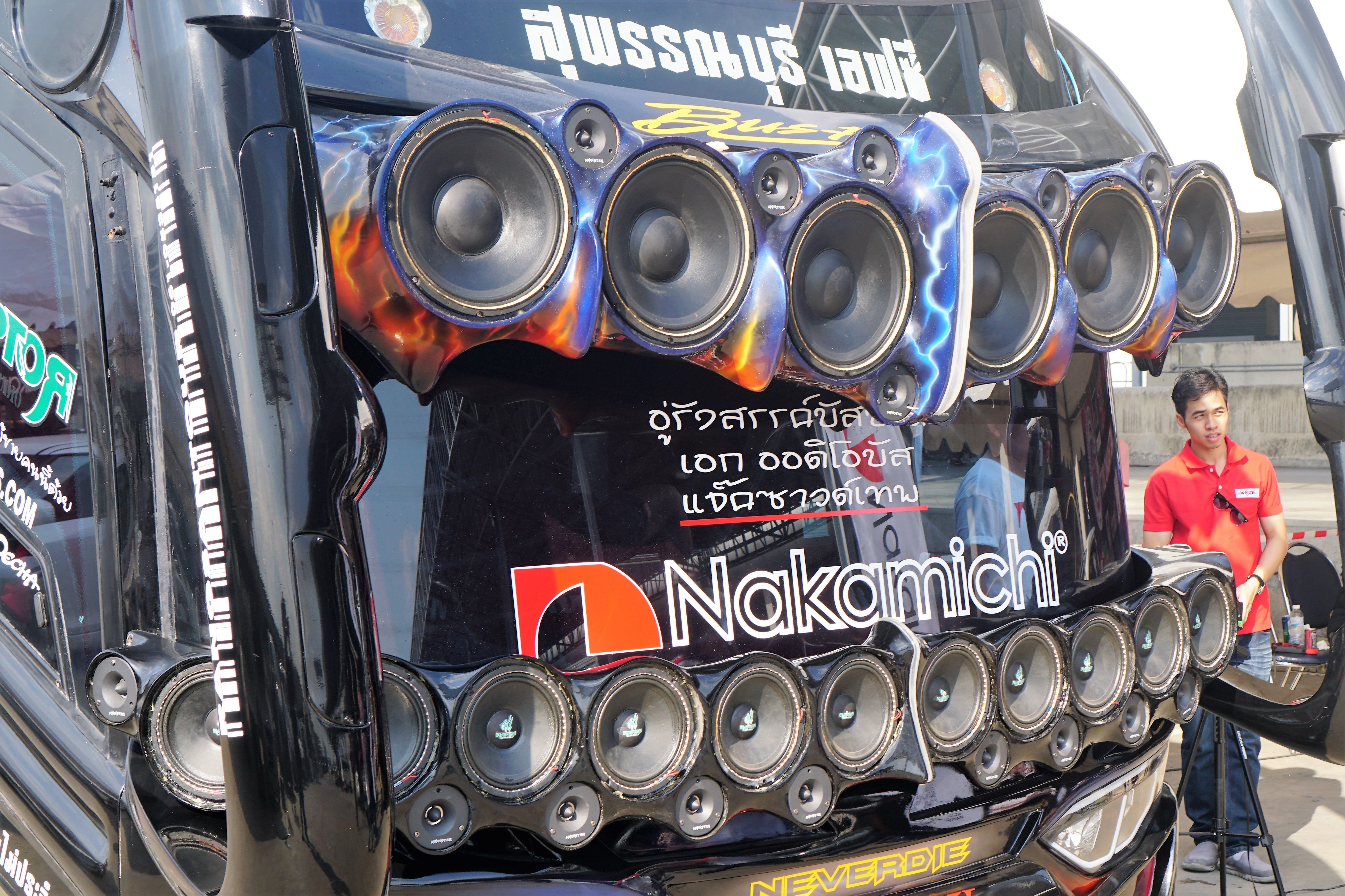 Big stereo systems are nothing new, but when they are on the OUTSIDE of a luxury coach ...Well, that's different.