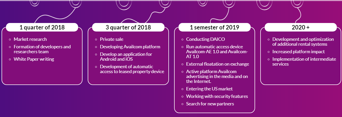 AvailCom ICO - AvailCom could be a platform which will speed up the search and rental of any property, whether or not it's associate lodging or automotive, and can conjointly eliminate several negotiator actions of the shopper. Rental market turnover reaches $ 200 million each year, however, ways in which to lease property stay at an occasional level. The Blockchain platform can permit every guest to barter and rent-free property from the owner while not government officials delays because of the created setting environment. The owner, in turn, is assured in protecting his property.